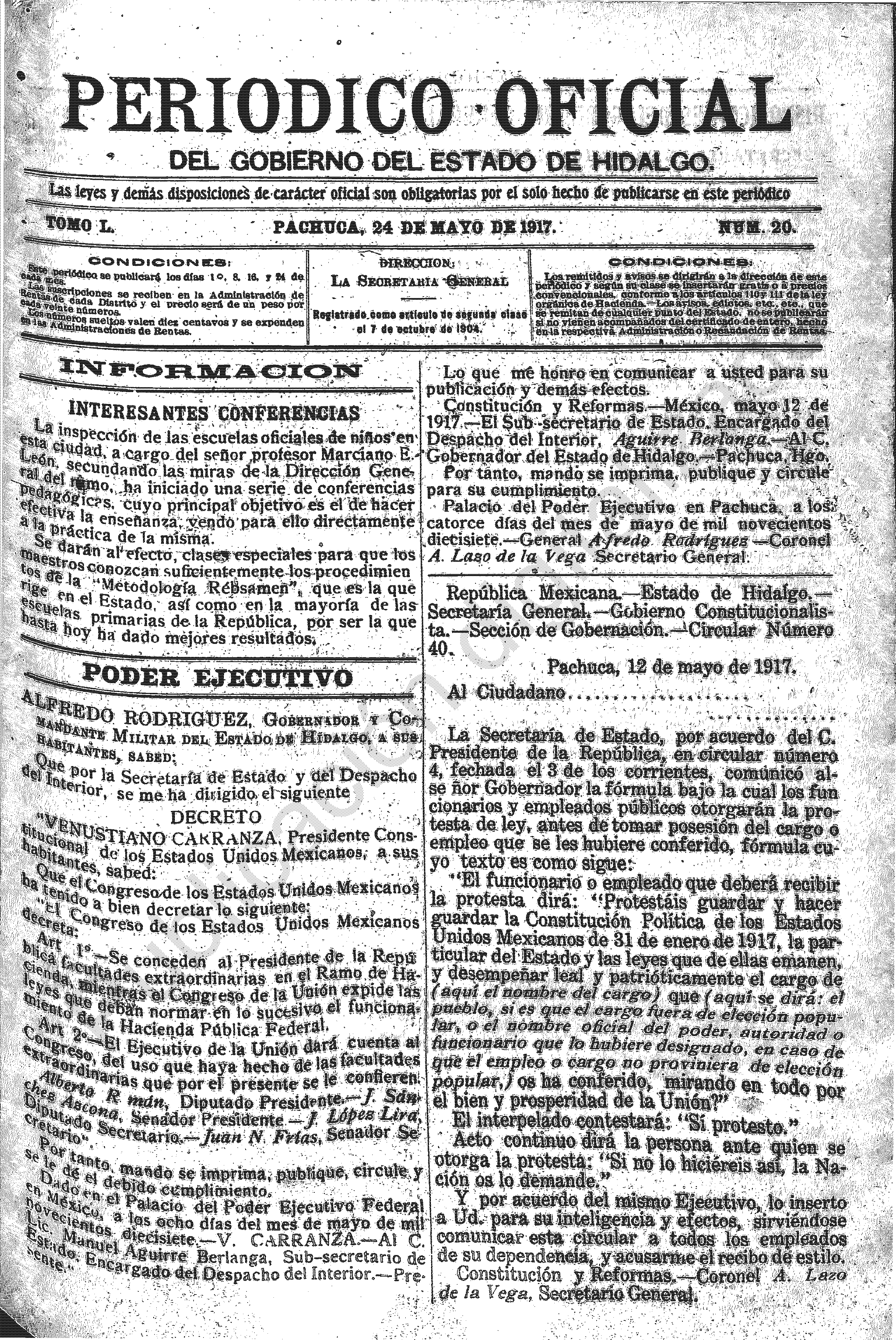 Descargar Periódico Oficial ordinario 0 del 24 de mayo de 1917Tamaño 3.64 MB