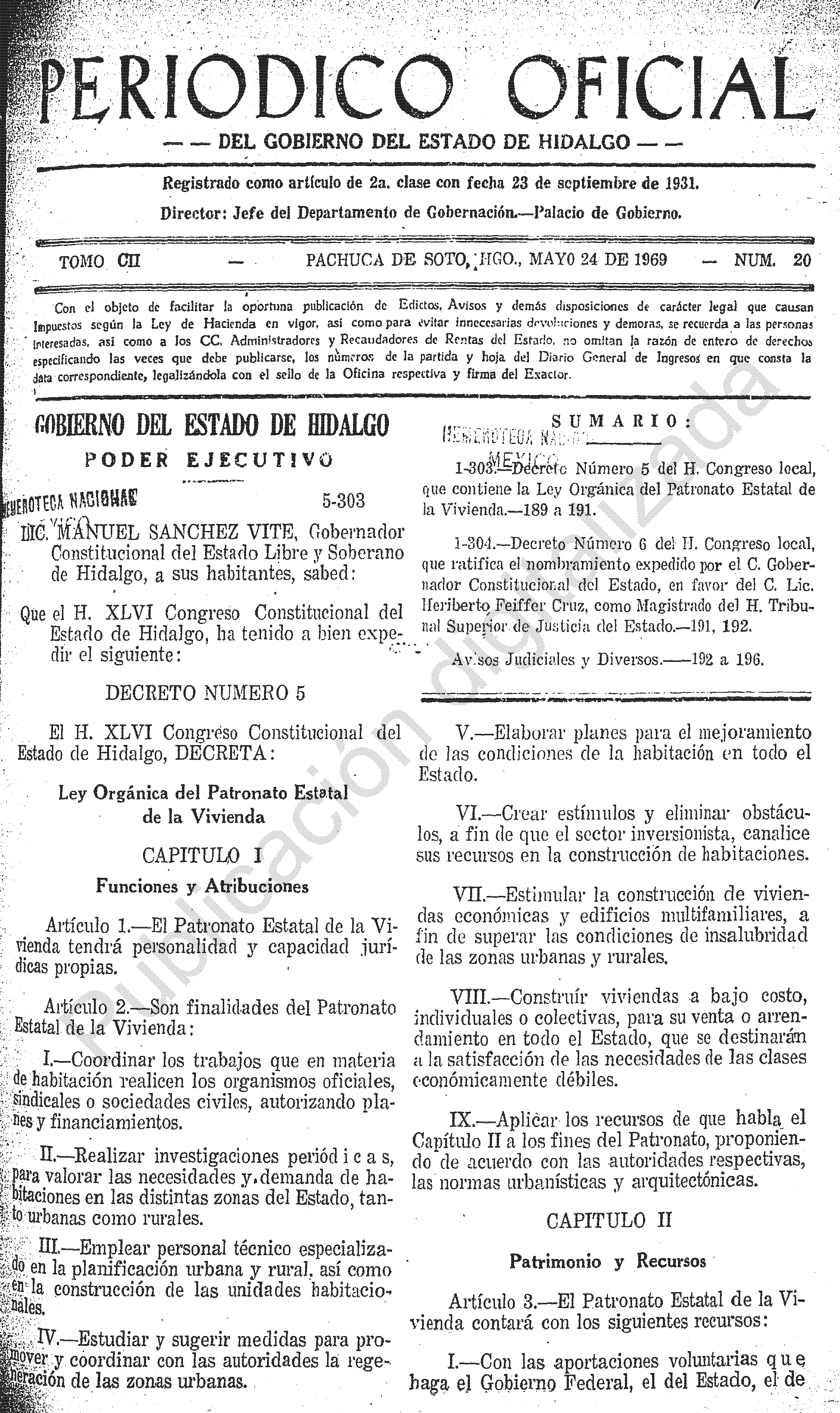 Descargar Periódico Oficial Ordinario 0 del 24 de mayo de 1969