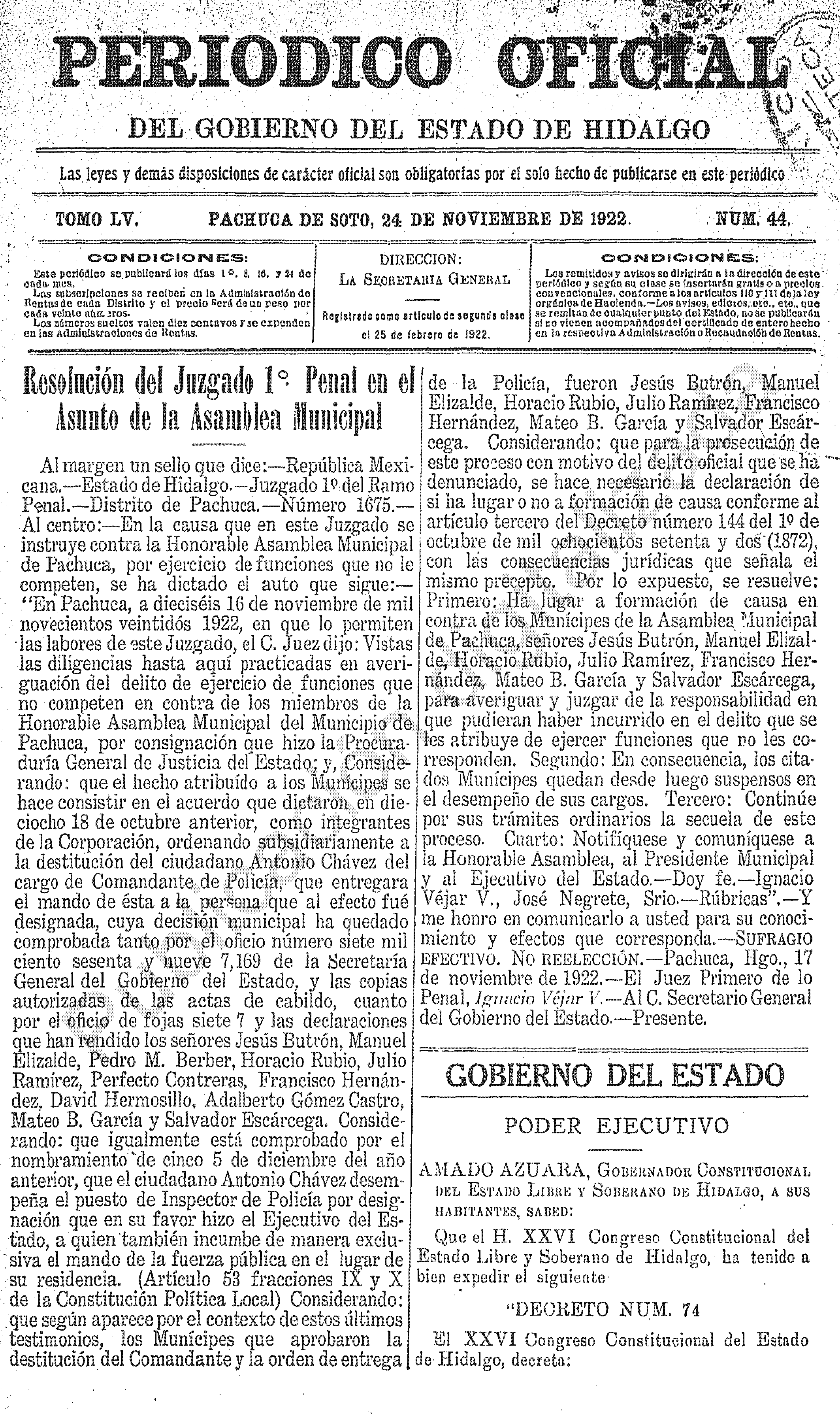 Descargar Periódico Oficial ordinario 0 del 24 de noviembre de 1922El portal web del Periódico Oficial del Estado de hidalgo es el único medio de difusión oficial del Gobierno del Estado de Hidalgo
