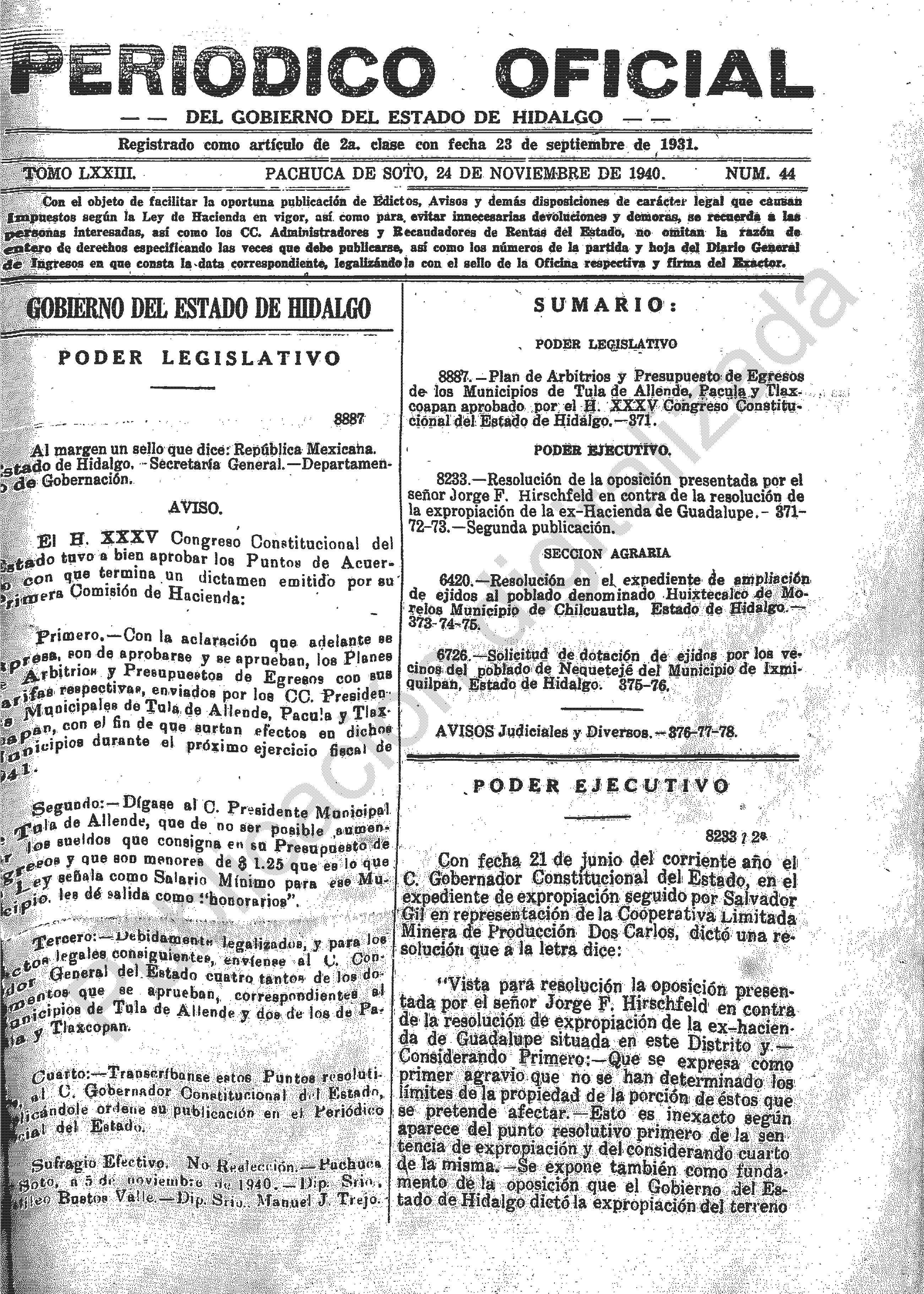 Descargar Periódico Oficial Ordinario 0 del 24 de noviembre de 1940
