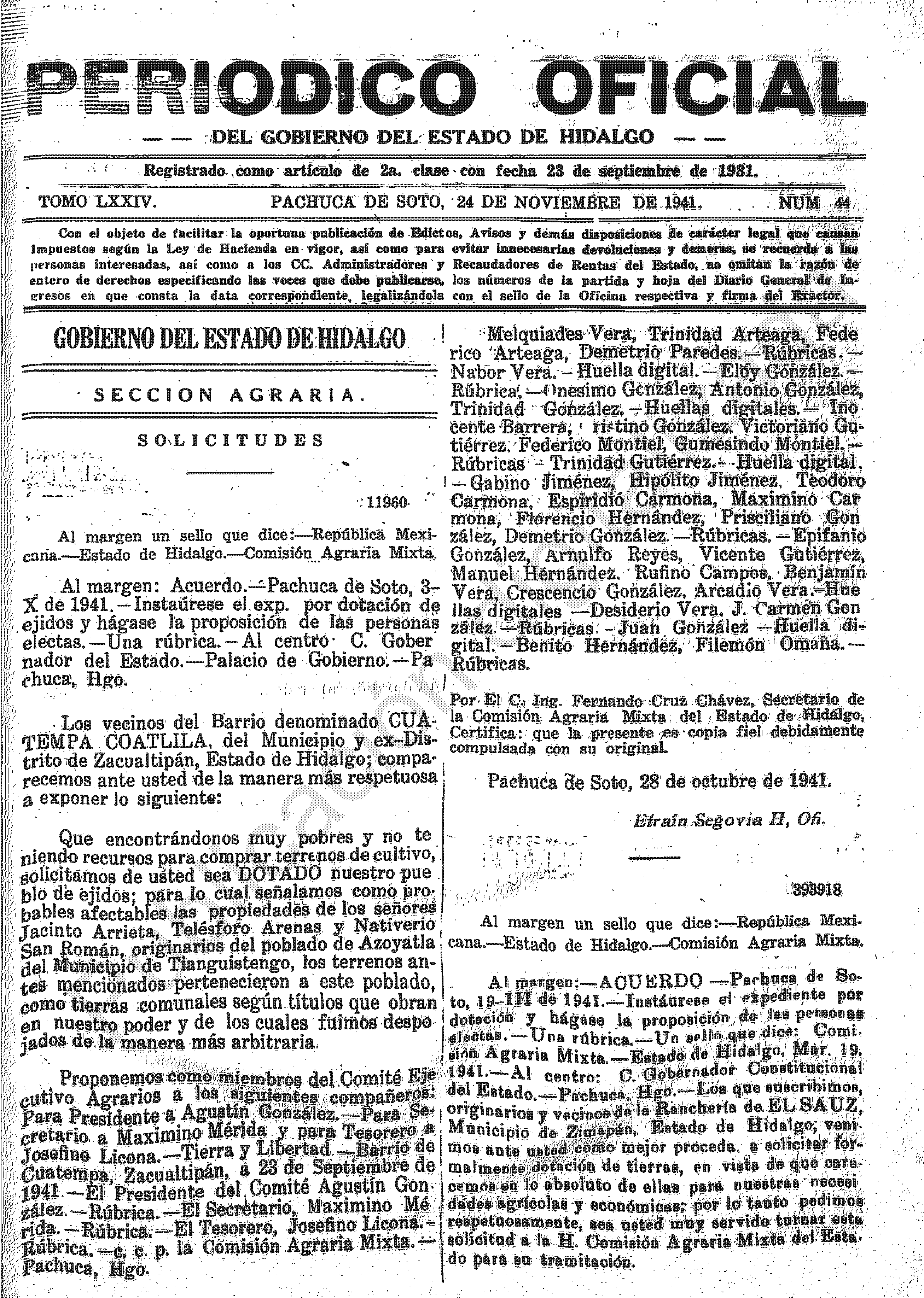 Descargar Periódico Oficial Ordinario 0 del 24 de noviembre de 1941