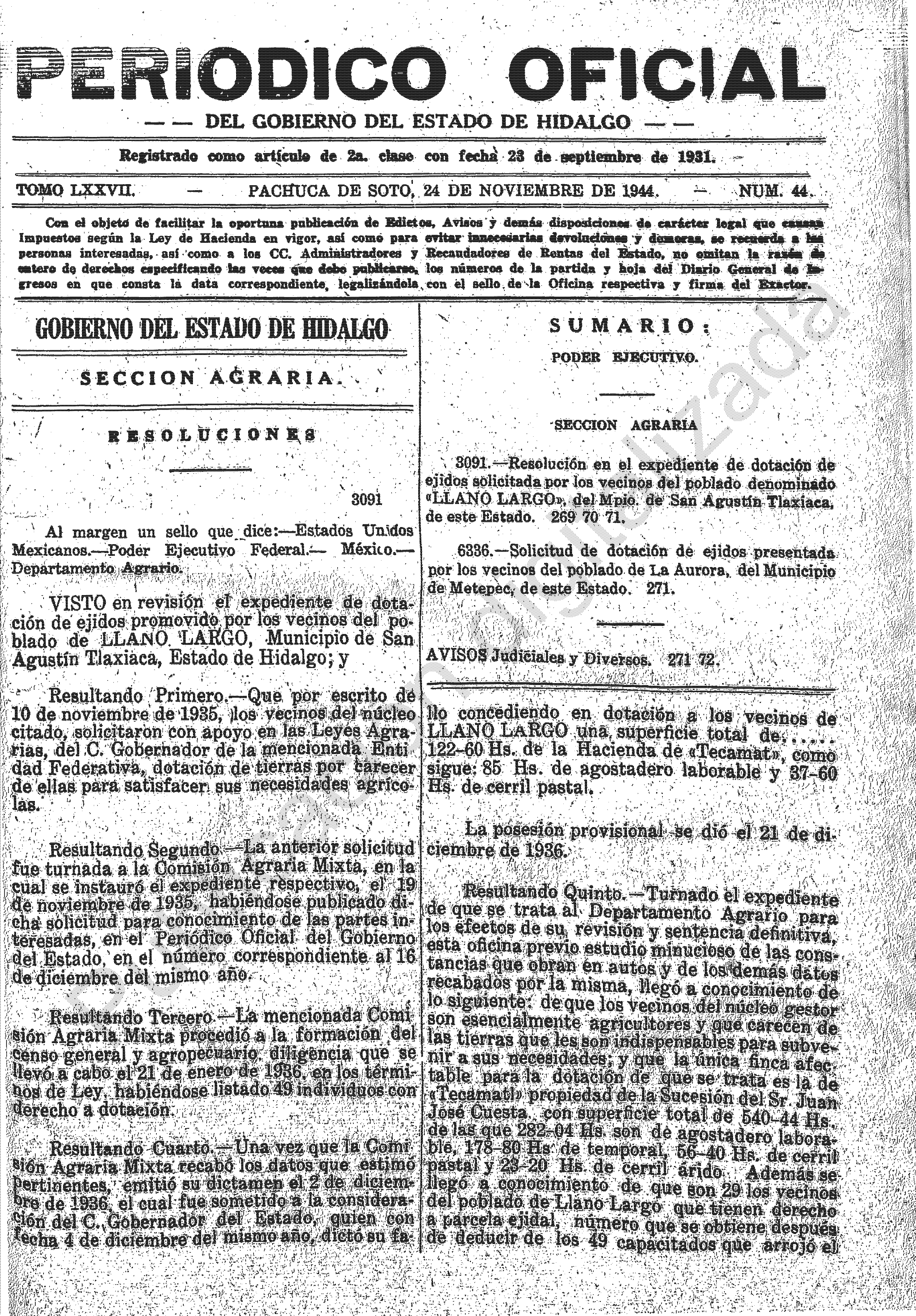 Descargar Periódico Oficial Ordinario 0 del 24 de noviembre de 1944