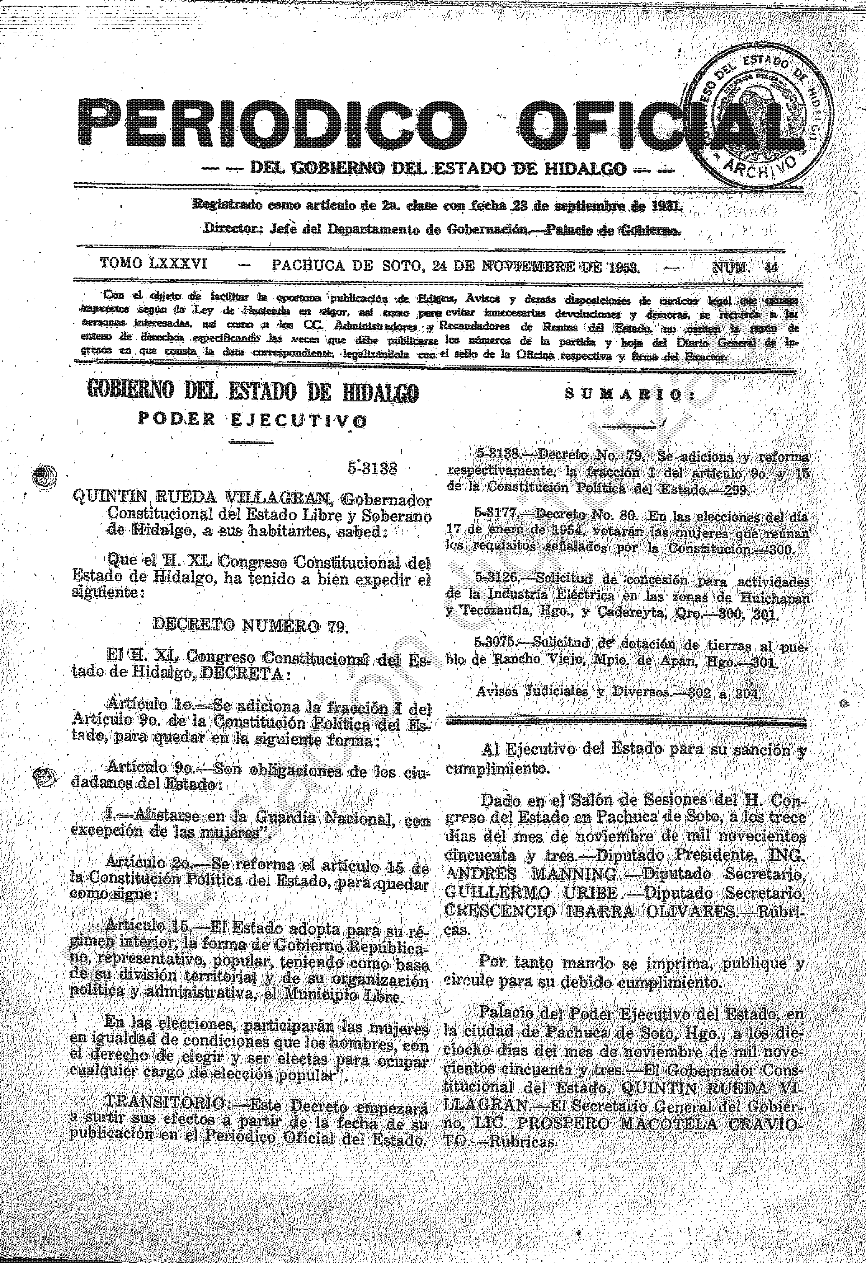 Descargar Periódico Oficial Ordinario 0 del 24 de noviembre de 1953