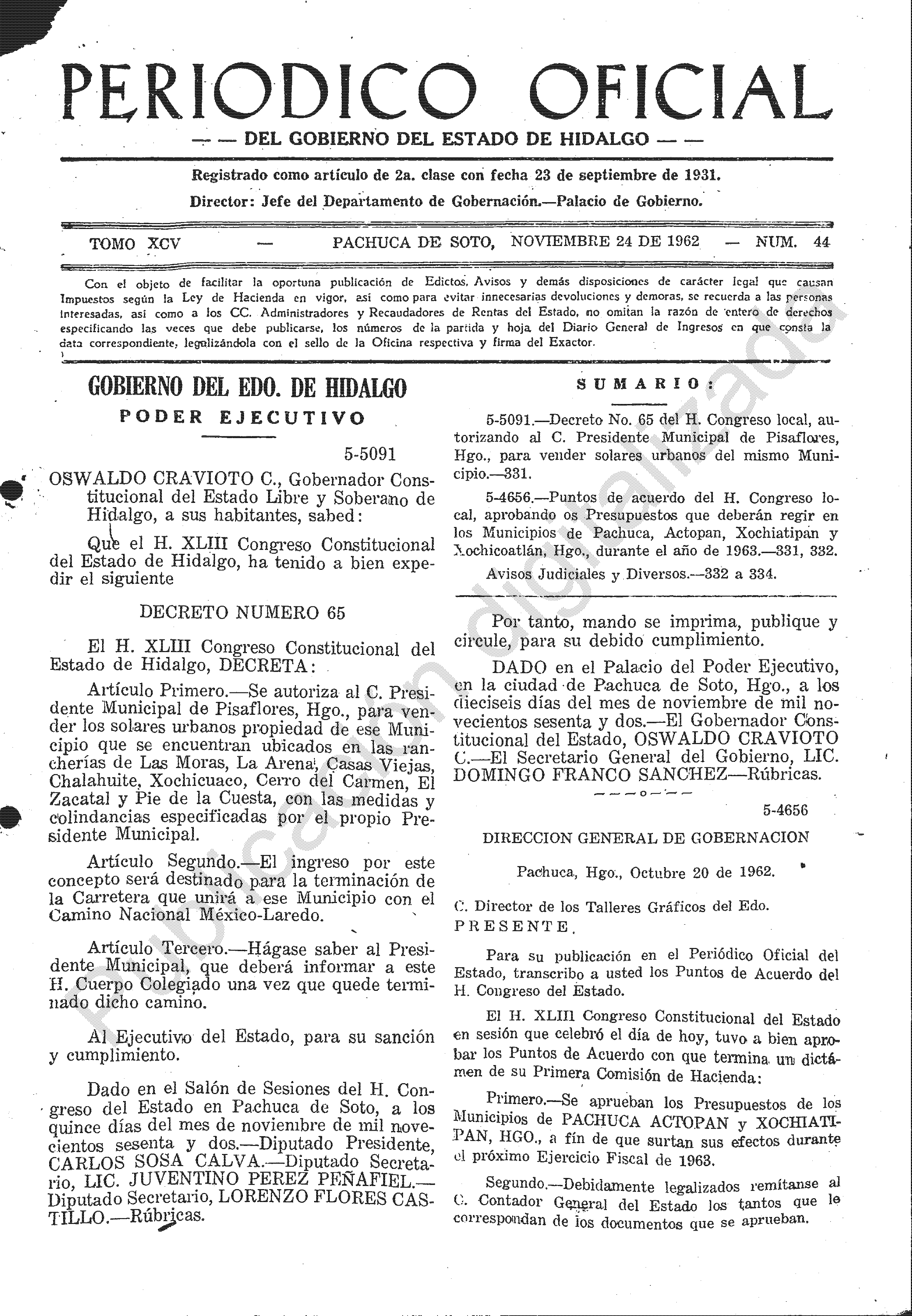 Descargar Periódico Oficial Ordinario 0 del 24 de noviembre de 1962