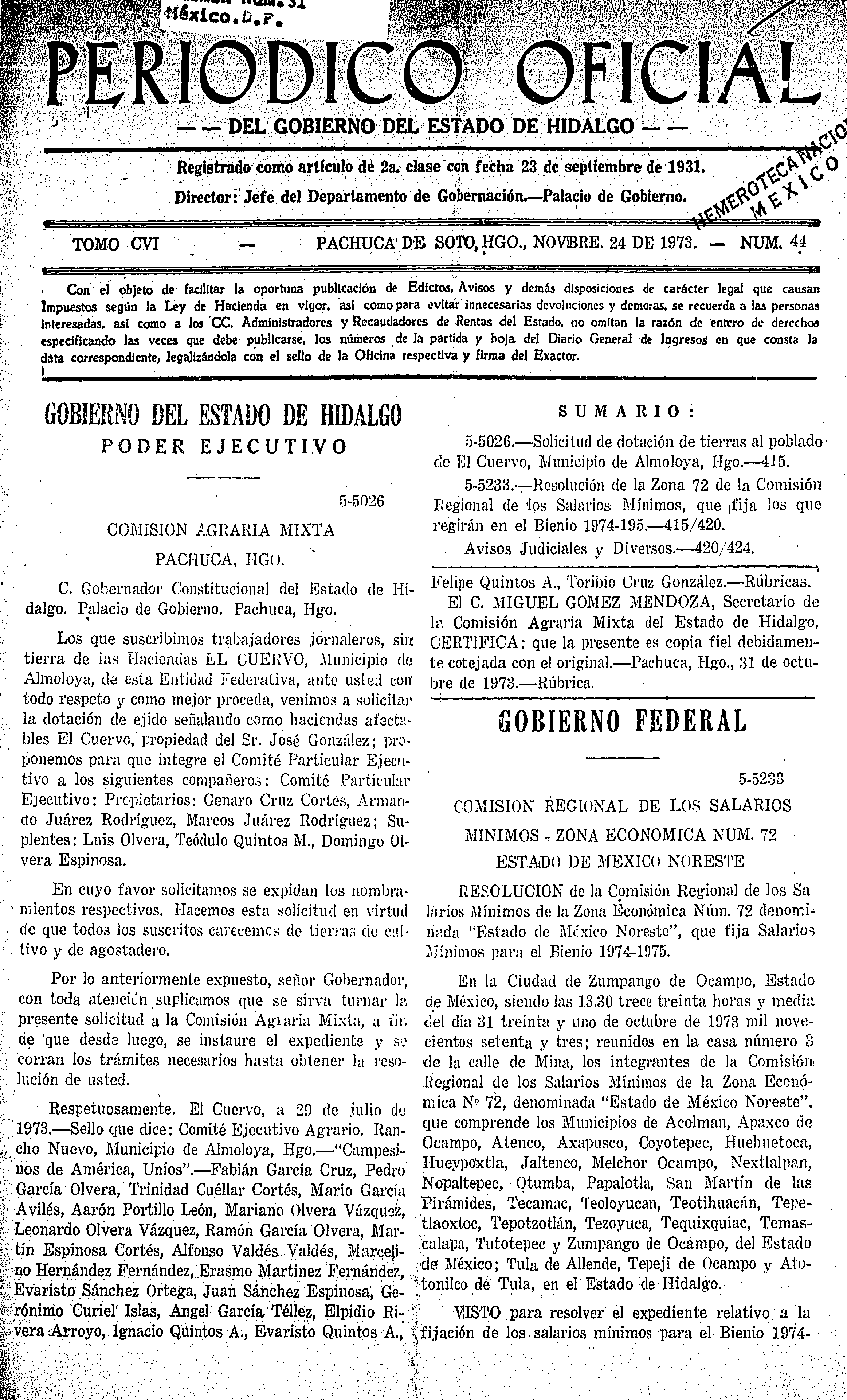 Periódico Oficial Ordinario 0 del 24 de noviembre de 1973