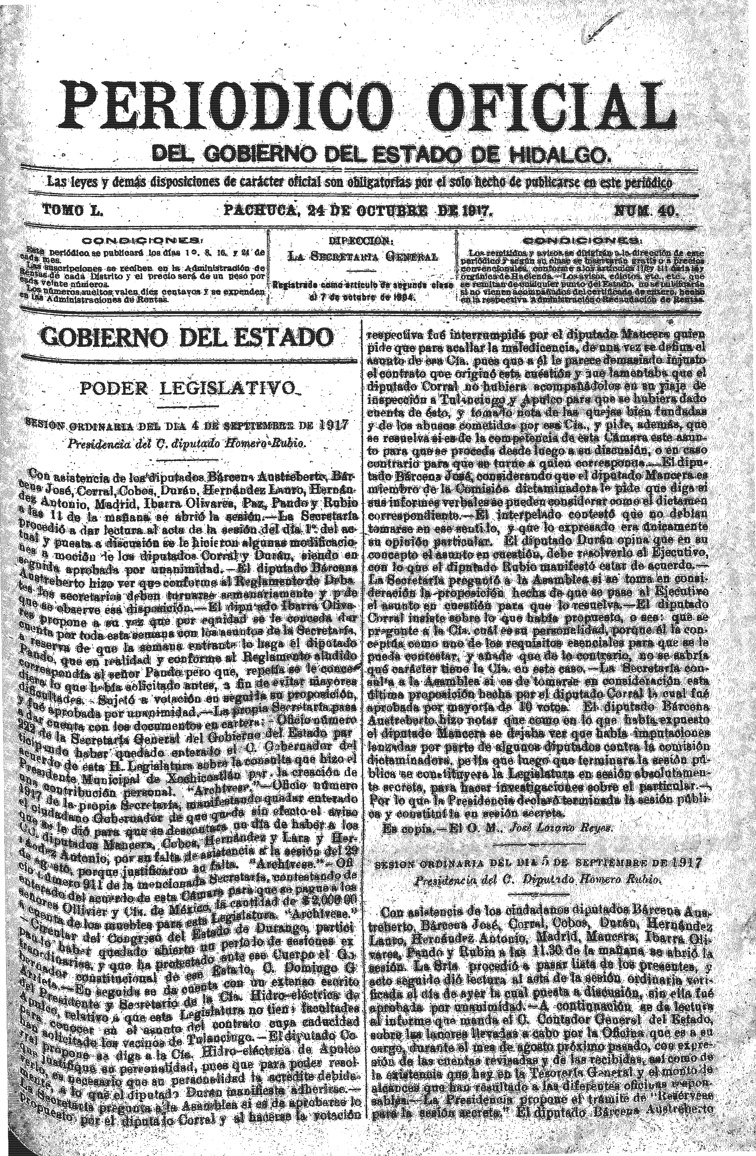 Descargar Periódico Oficial Ordinario 0 del 24 de octubre de 1917Tamaño 5.94 MB