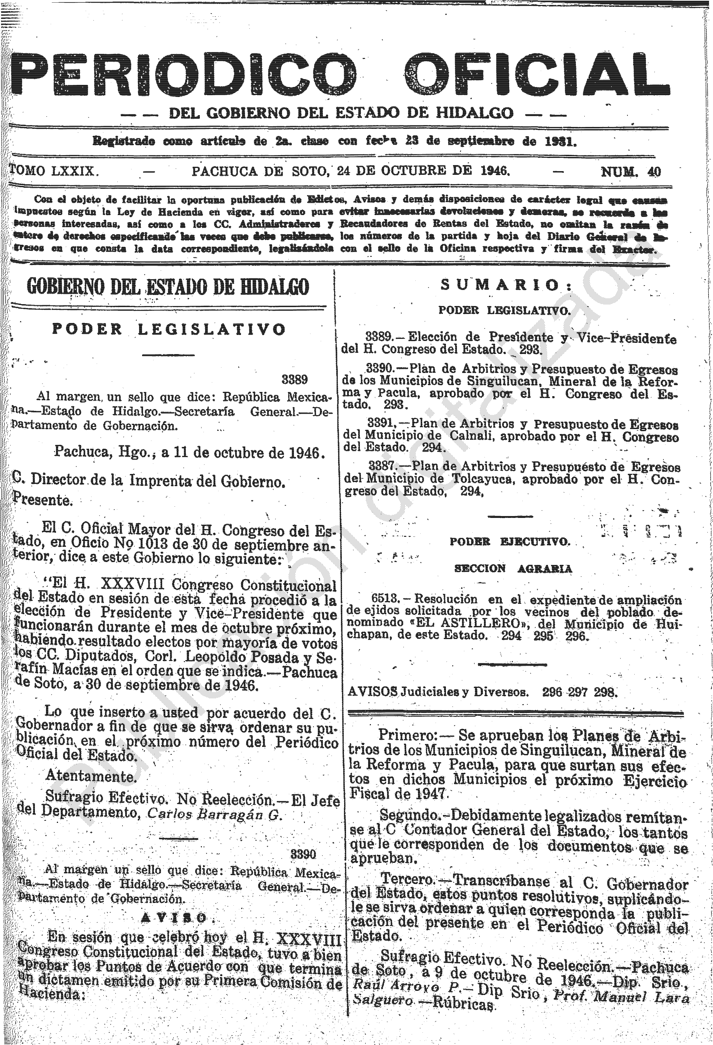 Periódico Oficial Ordinario 0 del 24 de octubre de 1946