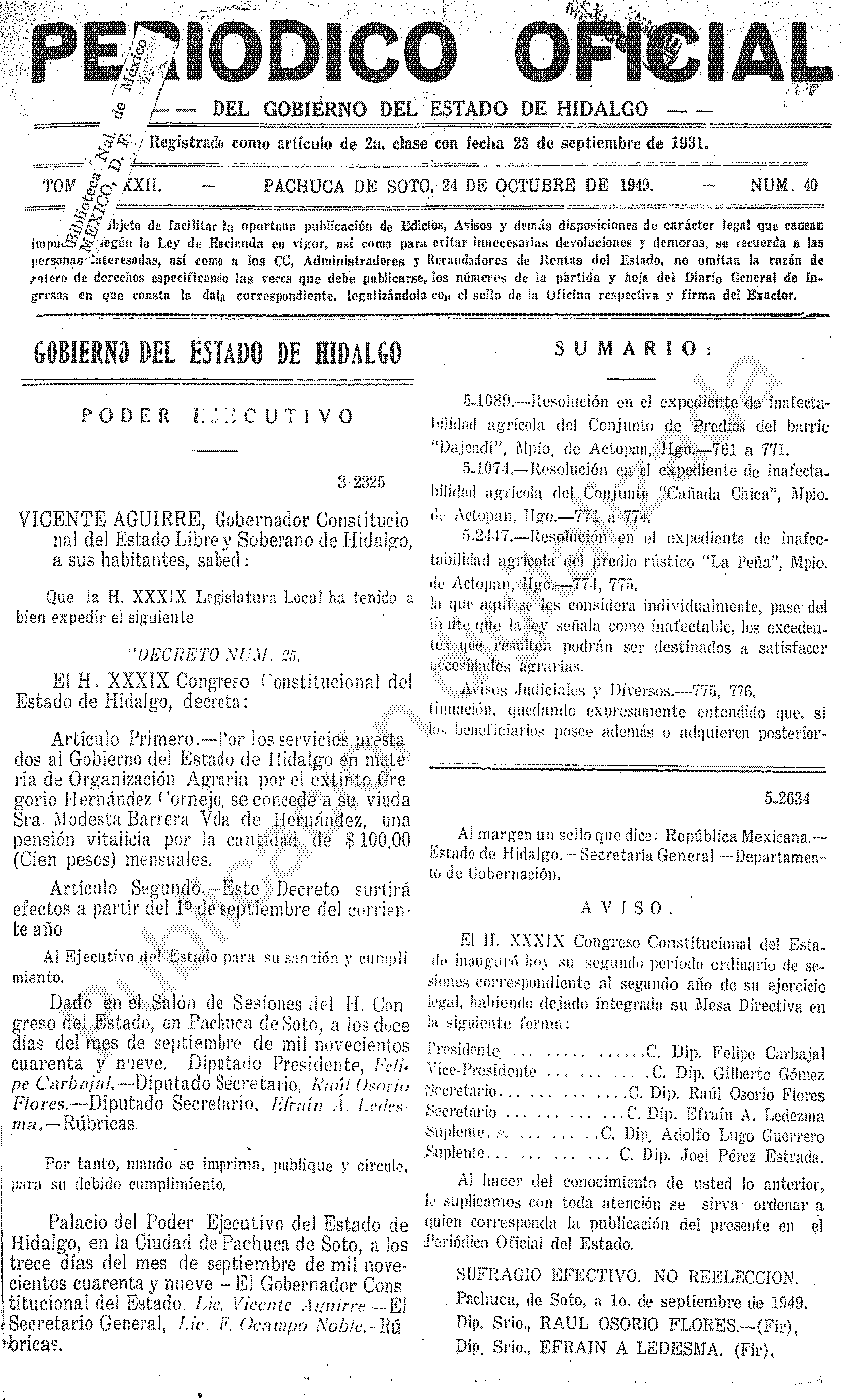 Descargar Periódico Oficial Ordinario 0 del 24 de octubre de 1949