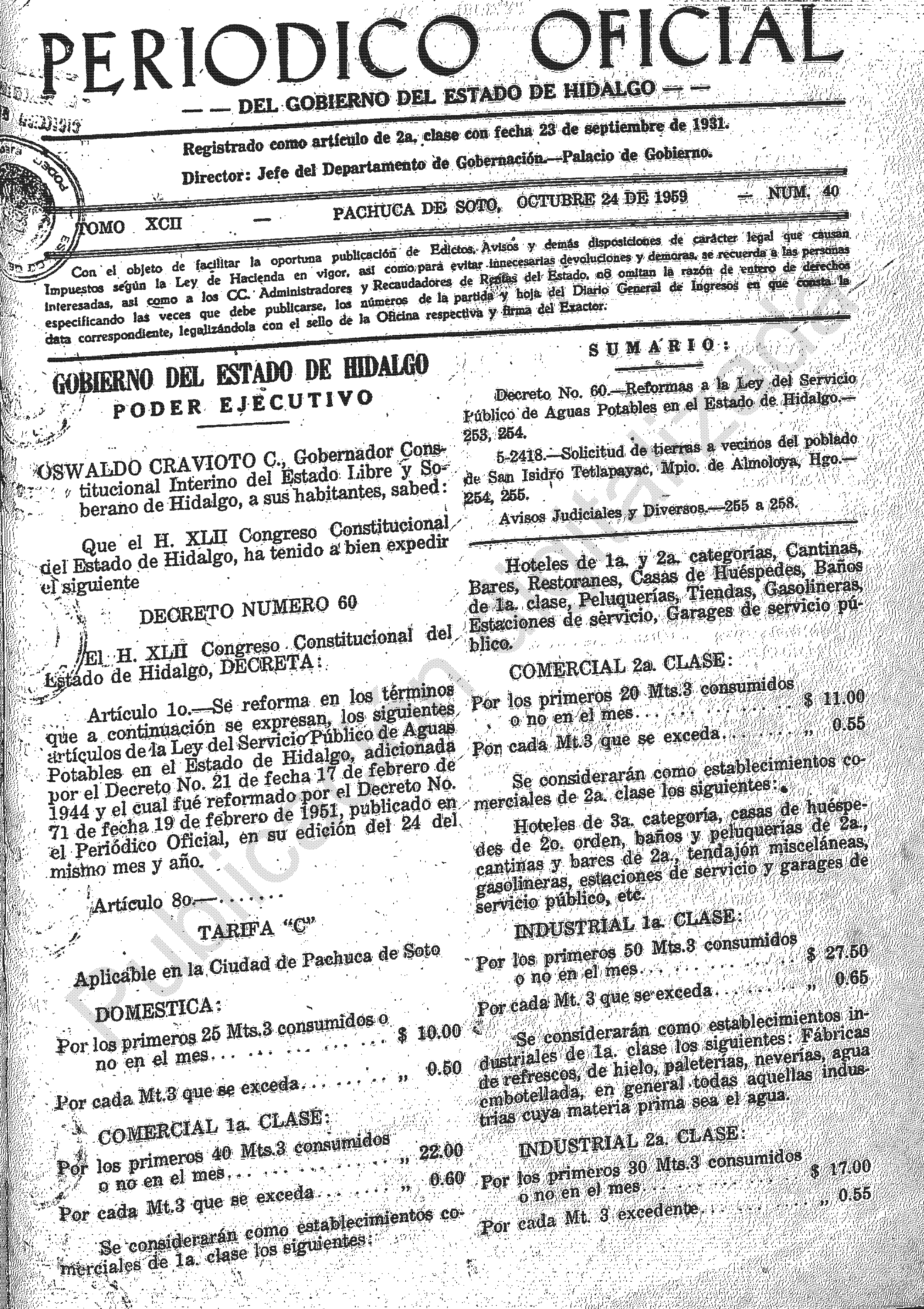 Descargar Periódico Oficial Ordinario 0 del 24 de octubre de 1959