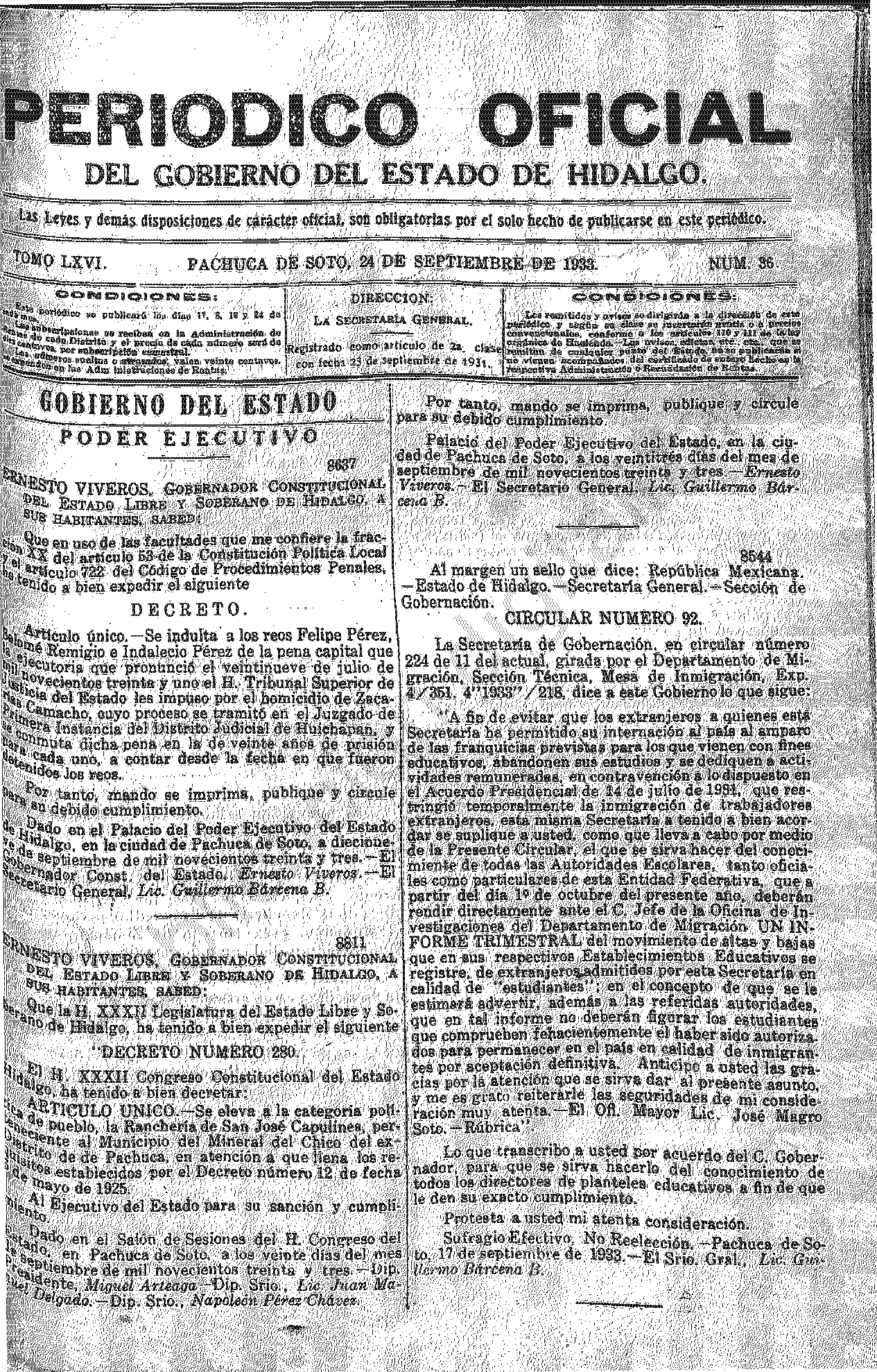 Descargar Periódico Oficial Ordinario 0 del 24 de septiembre de 1933