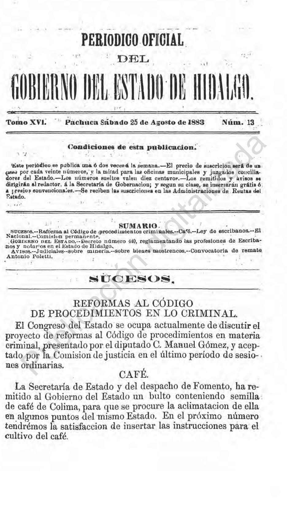Descargar Periódico Oficial Ordinario 0 del 25 de agosto de 1883Tamaño 520.48 KB