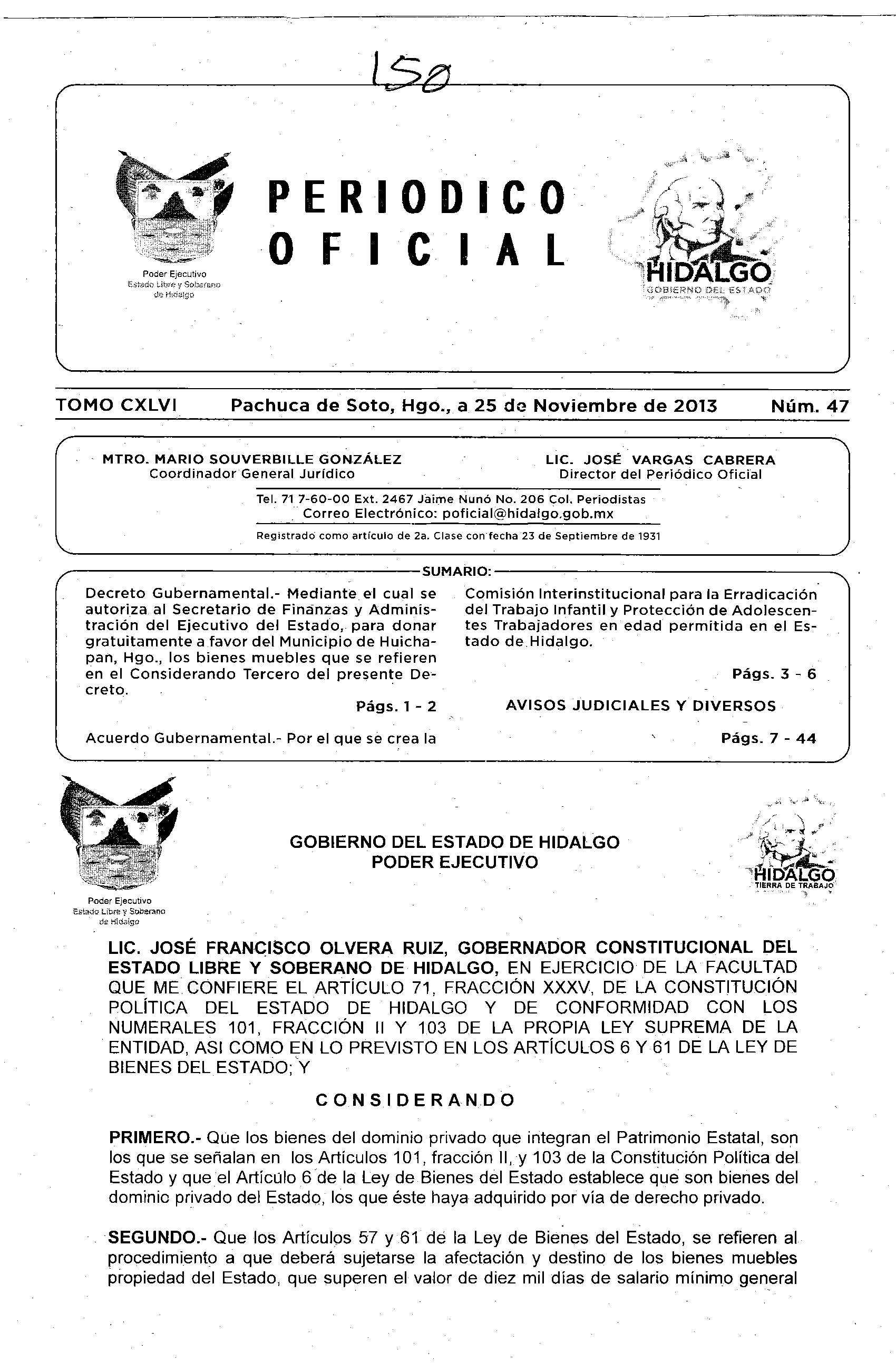 Descargar Periódico Oficial Ordinario 0 del 25 de noviembre de 2013