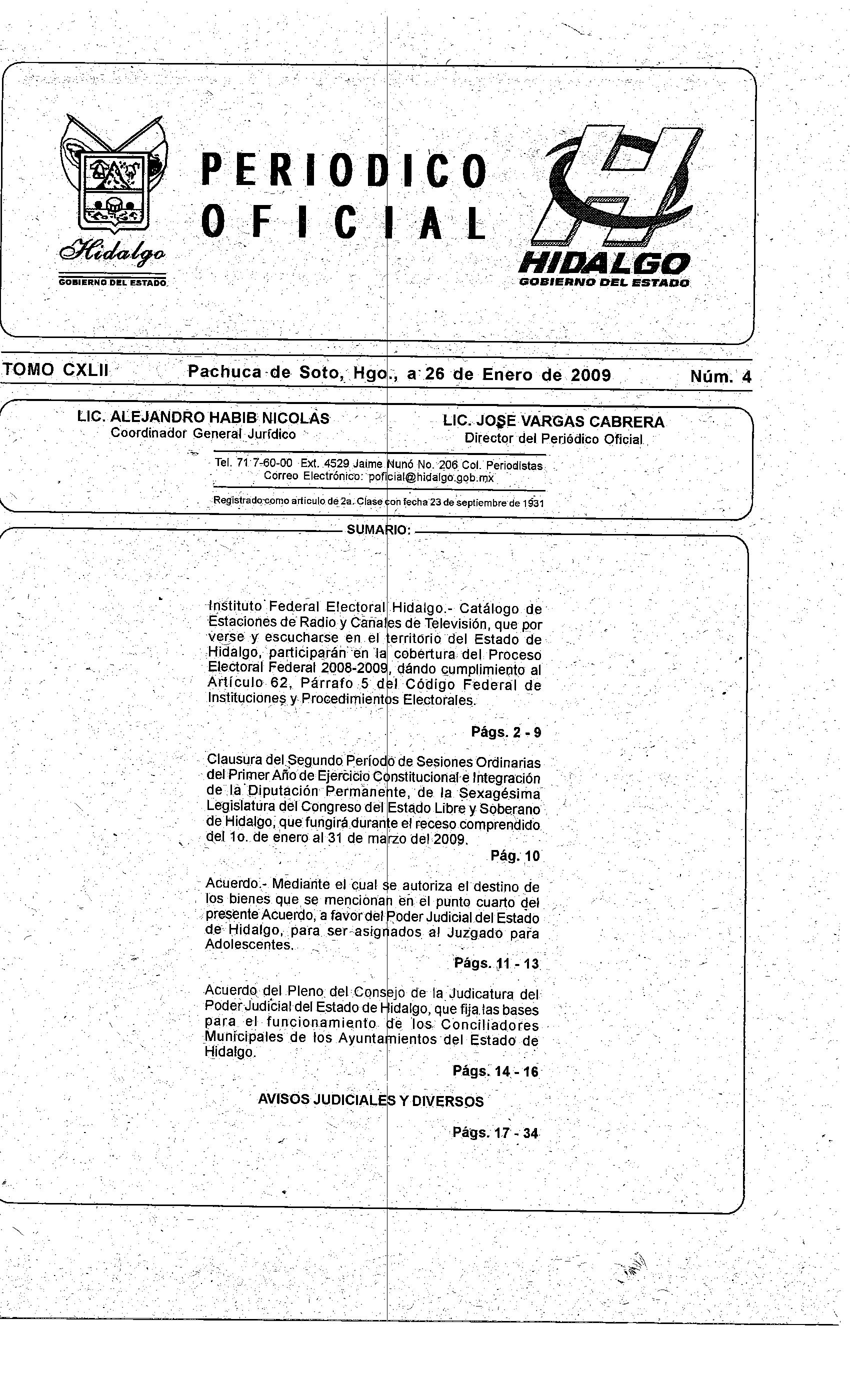 Periódico Oficial Ordinario 0 del 26 de enero de 2009