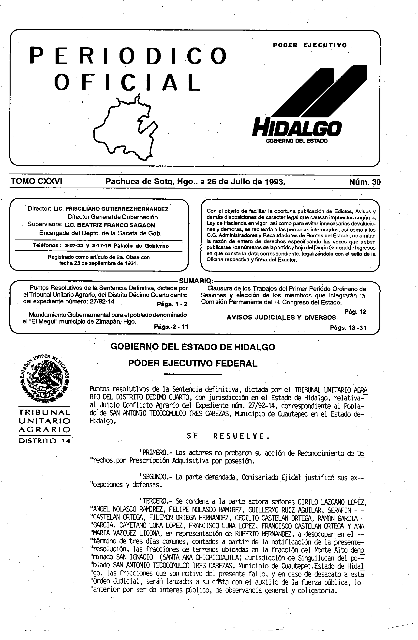 Descargar Periódico Oficial Ordinario 0 del 26 de julio de 1993