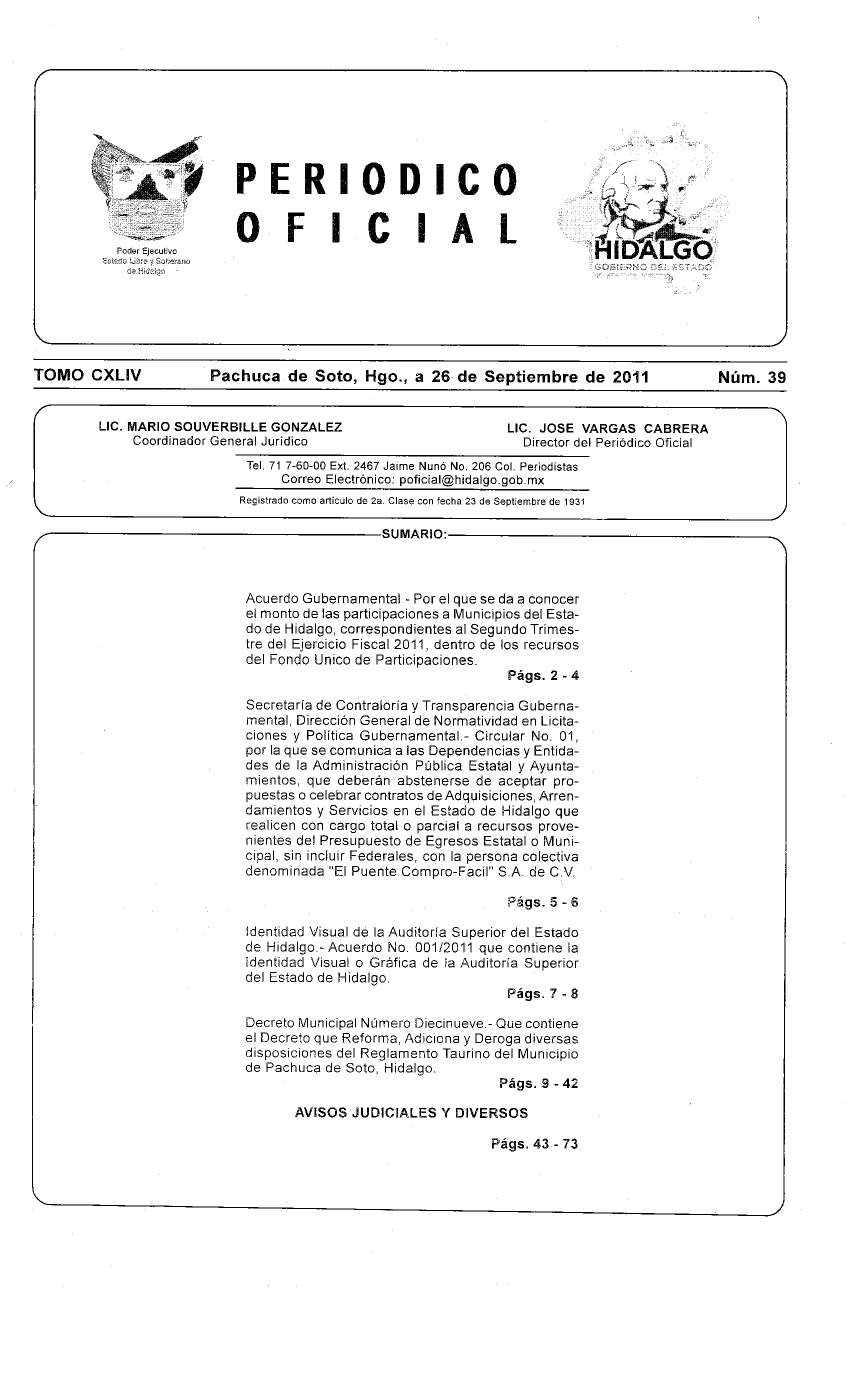 Periódico Oficial Ordinario 0 del 26 de septiembre de 2011