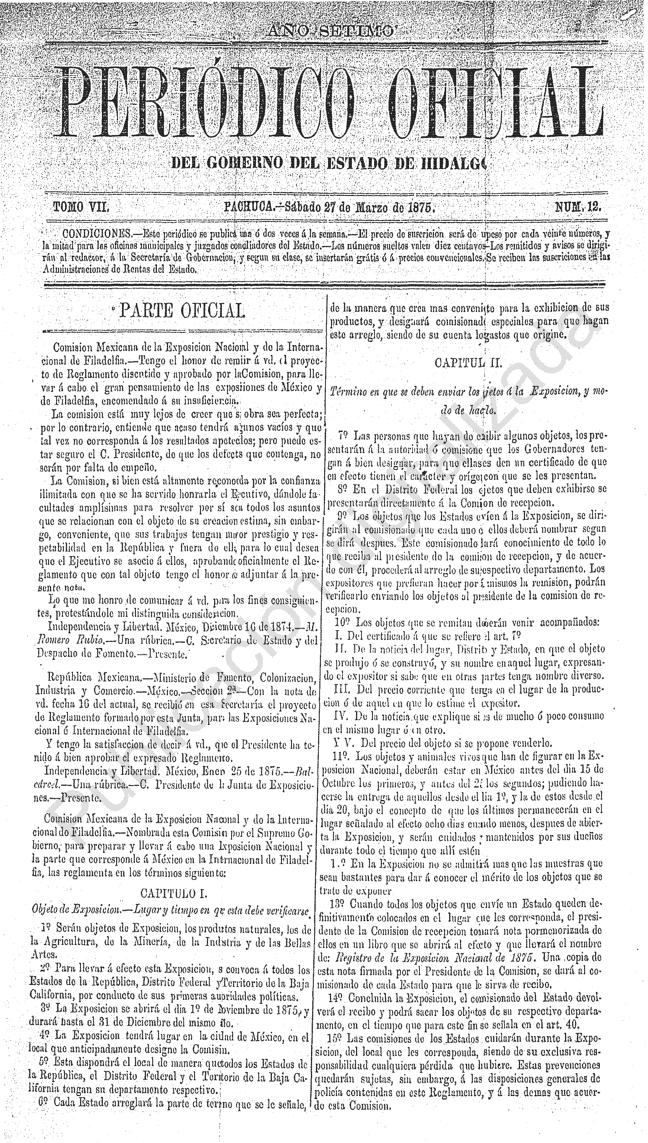 Periódico Oficial Ordinario 0 del 27 de marzo de 1875