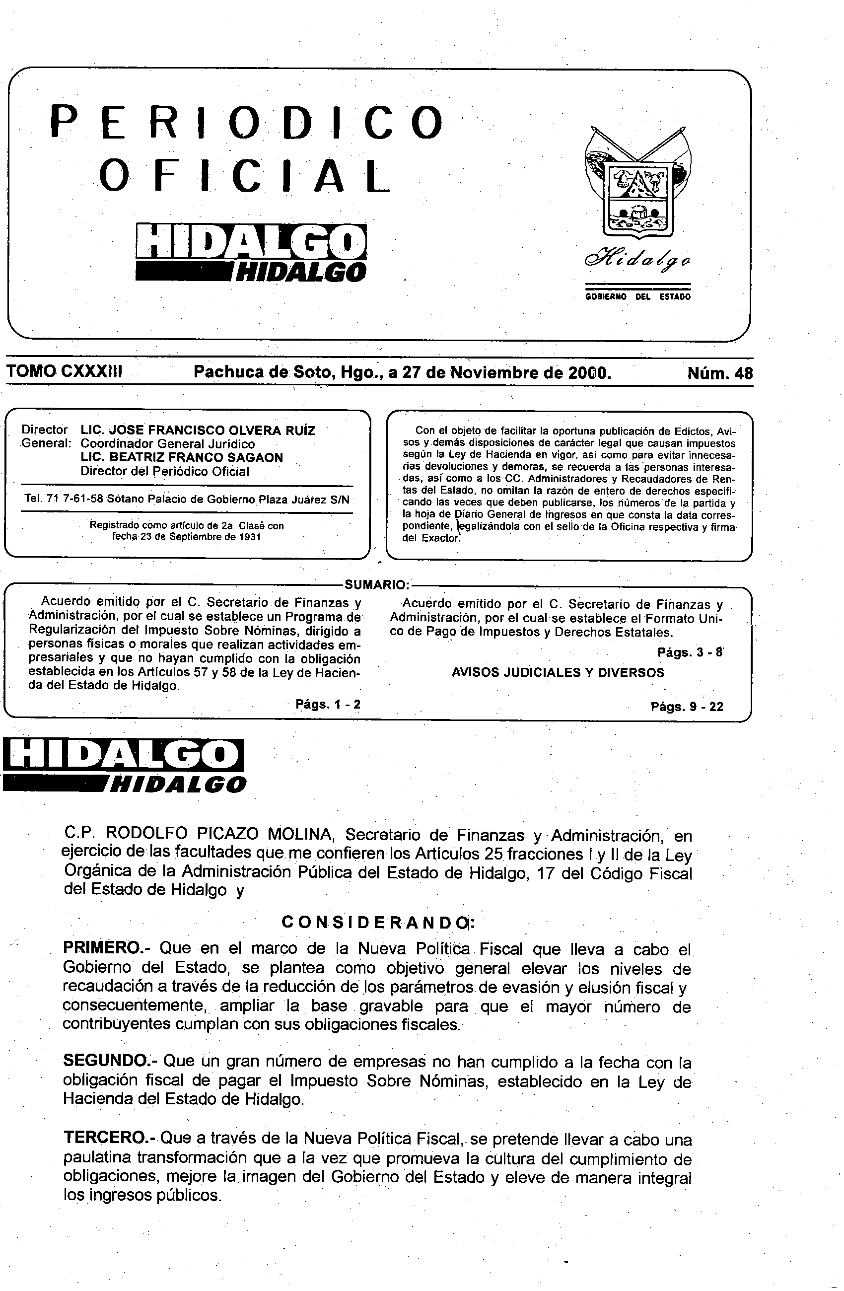 Periódico Oficial del Estado de Hidalgo