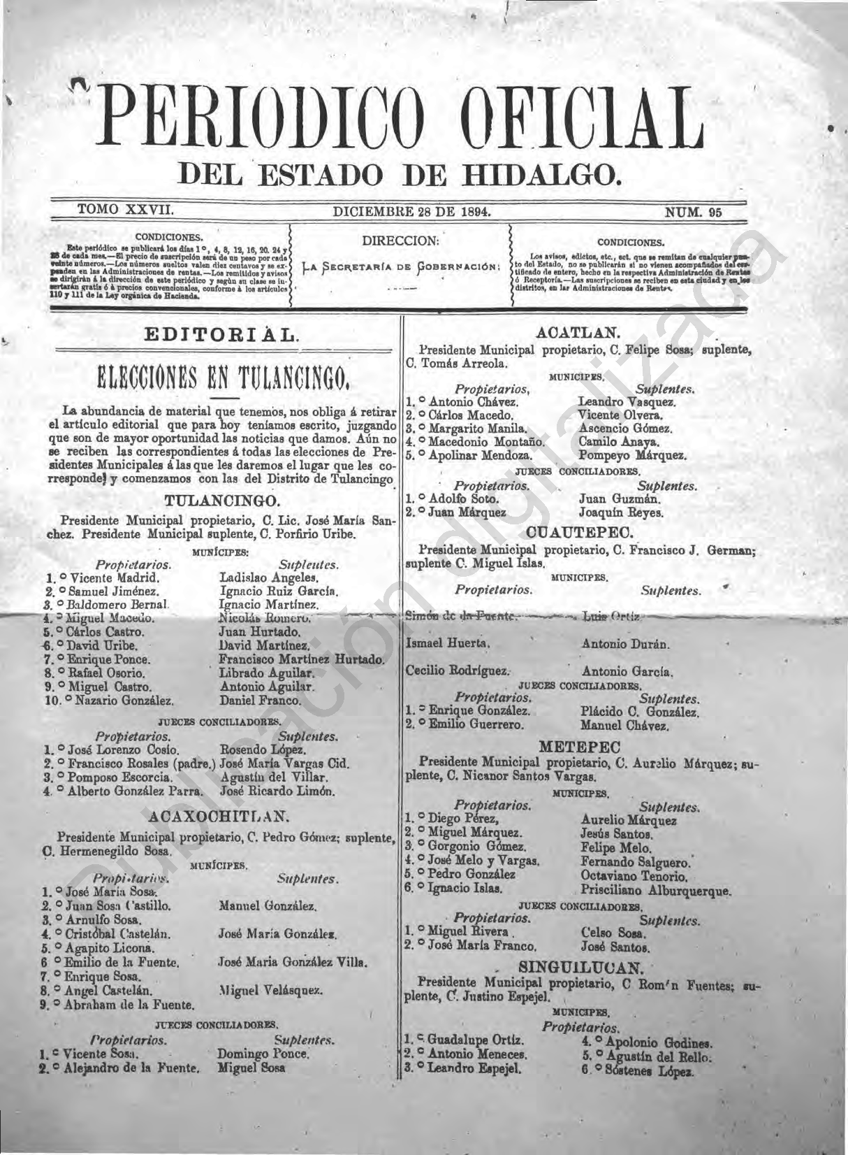 Periódico Oficial Ordinario 0 del 28 de diciembre de 1894