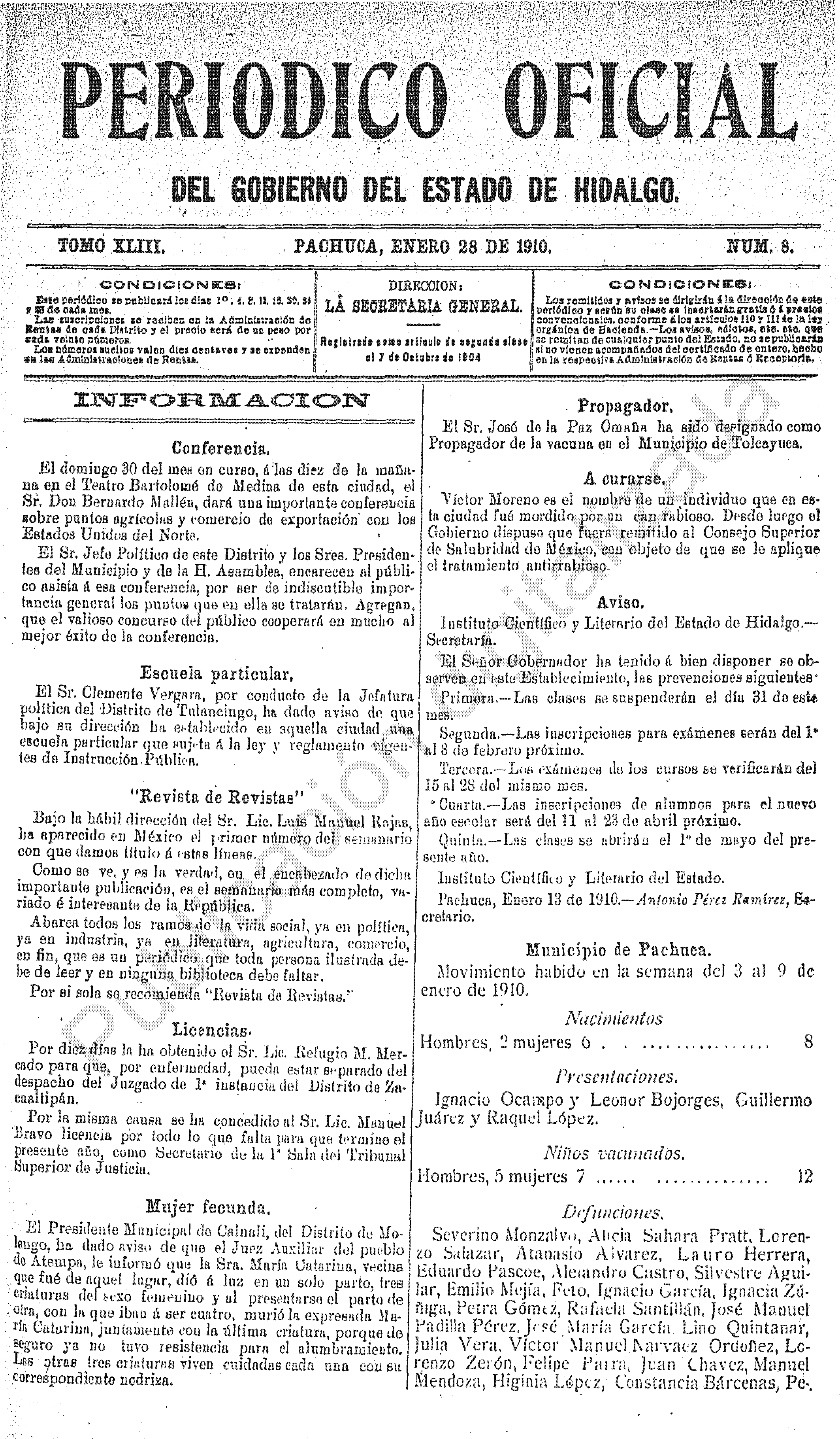 Periódico Oficial Ordinario 0 del 28 de enero de 1910