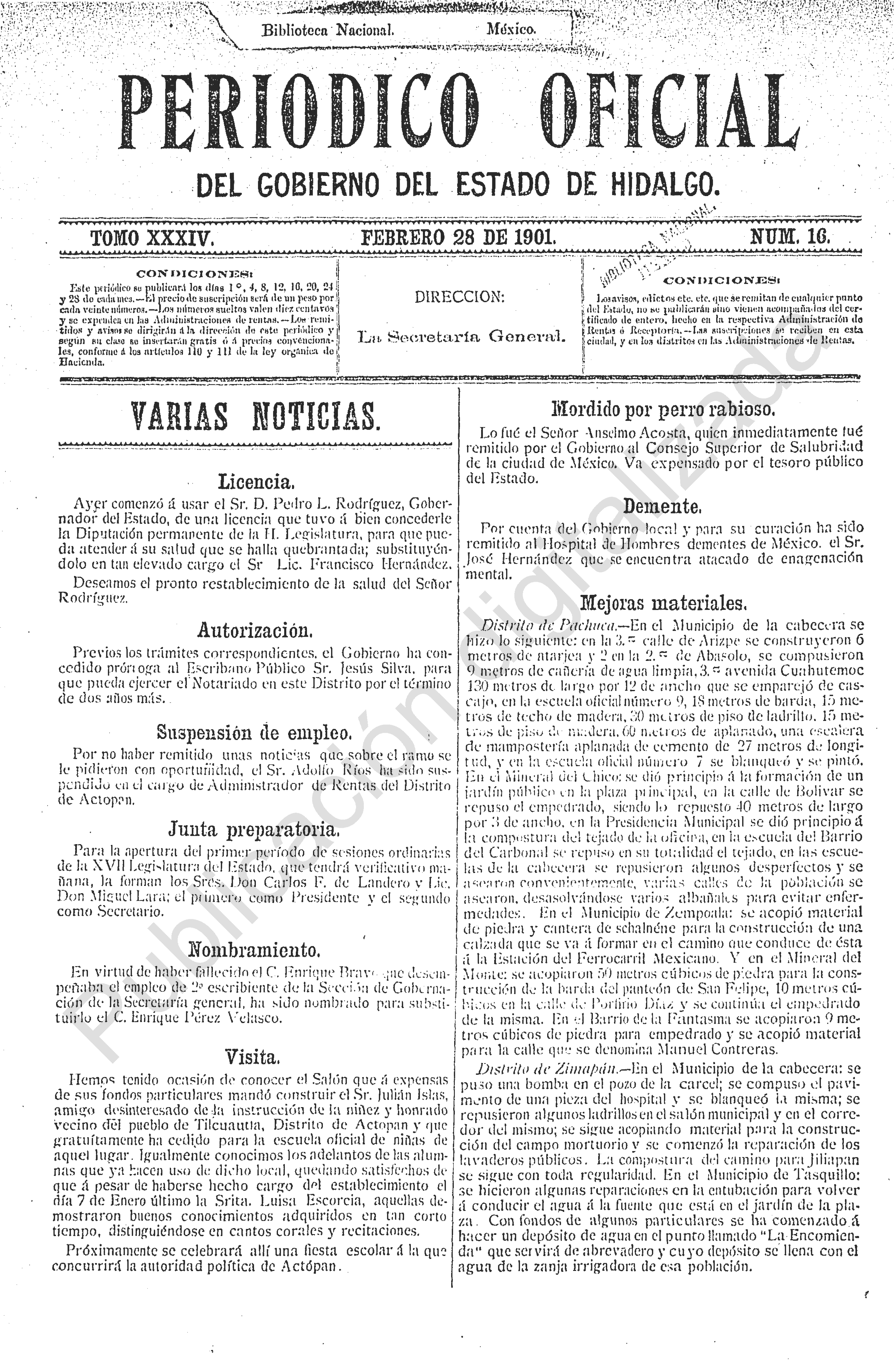 Periódico Oficial Ordinario 0 del 28 de febrero de 1901