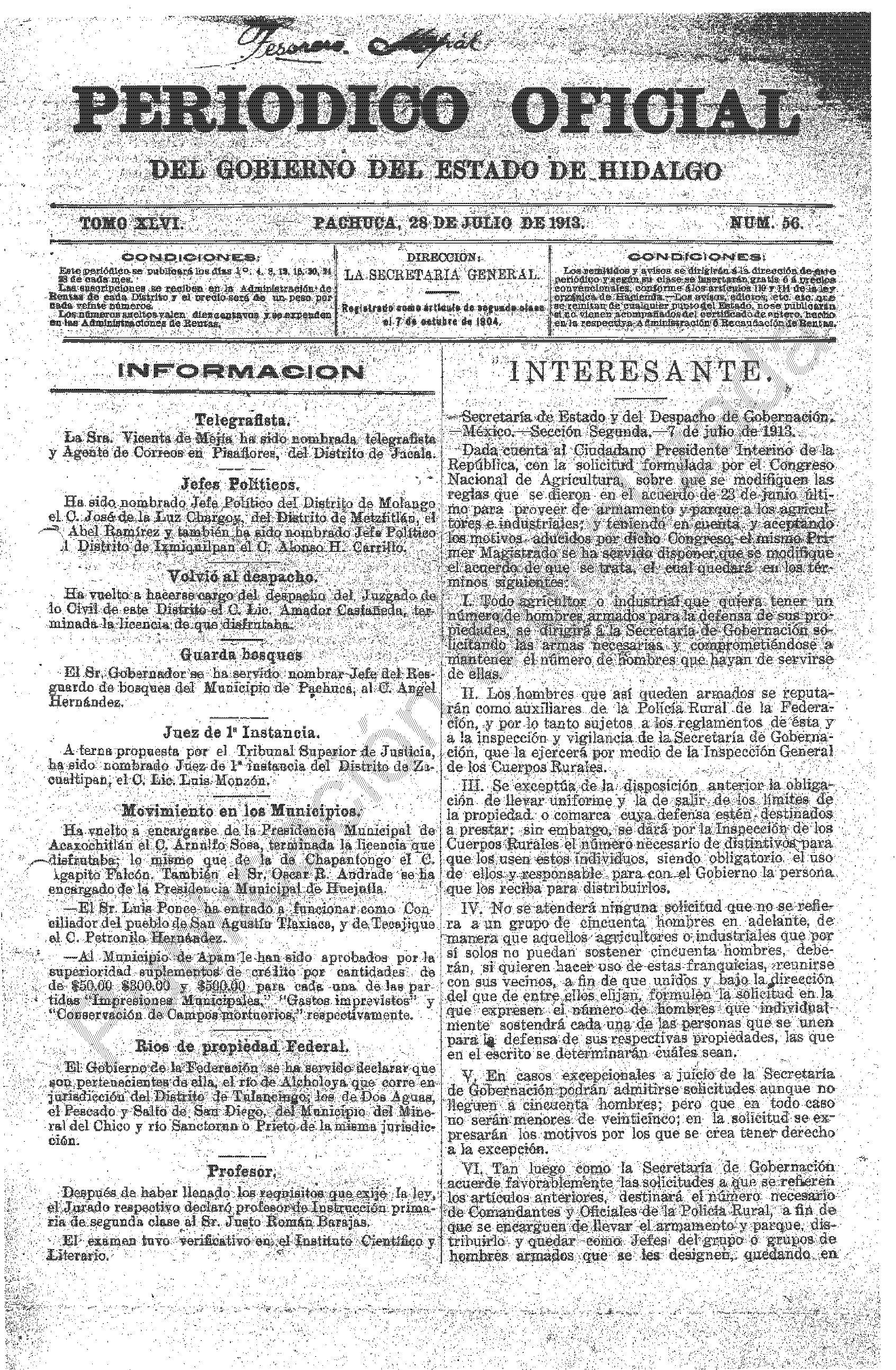 Descargar Periódico Oficial Ordinario 0 del 28 de julio de 1913Tamaño 1.25 MB