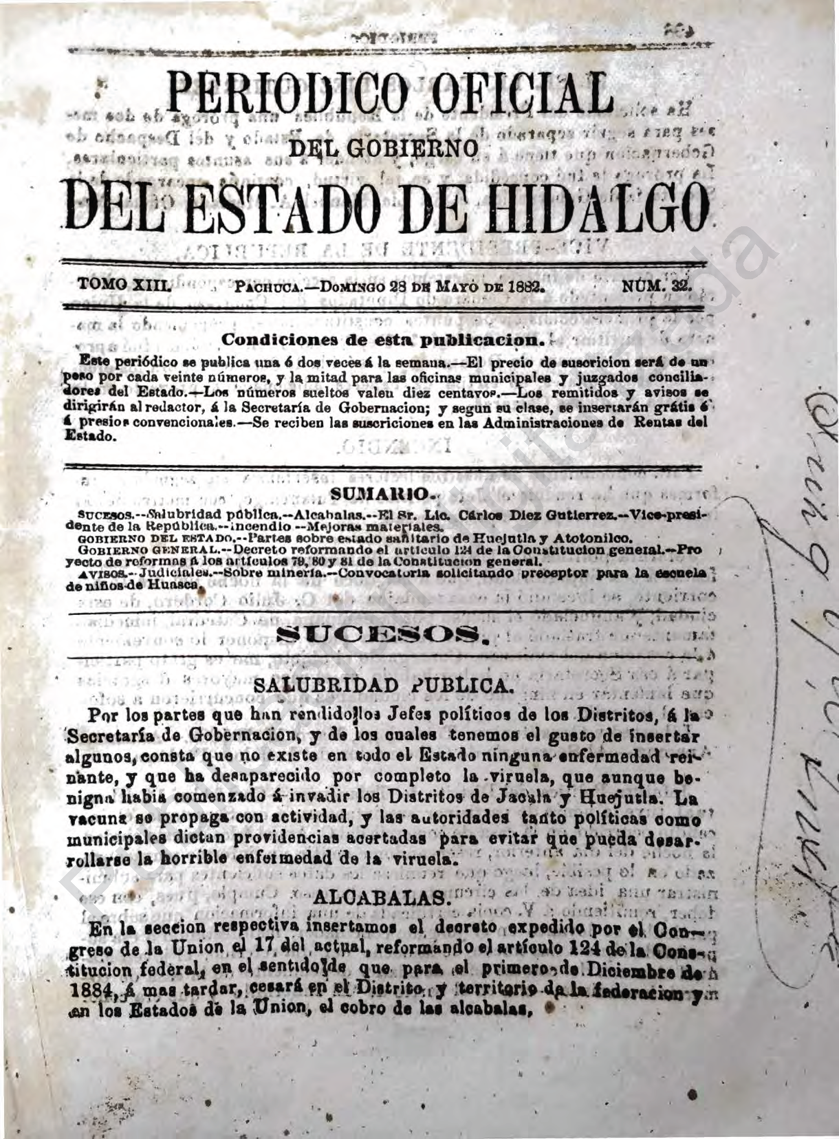 Descargar Periódico Oficial Ordinario 0 del 28 de mayo de 1882El portal web del Periódico Oficial del Estado de hidalgo es el único medio de difusión oficial del Gobierno del Estado de Hidalgo