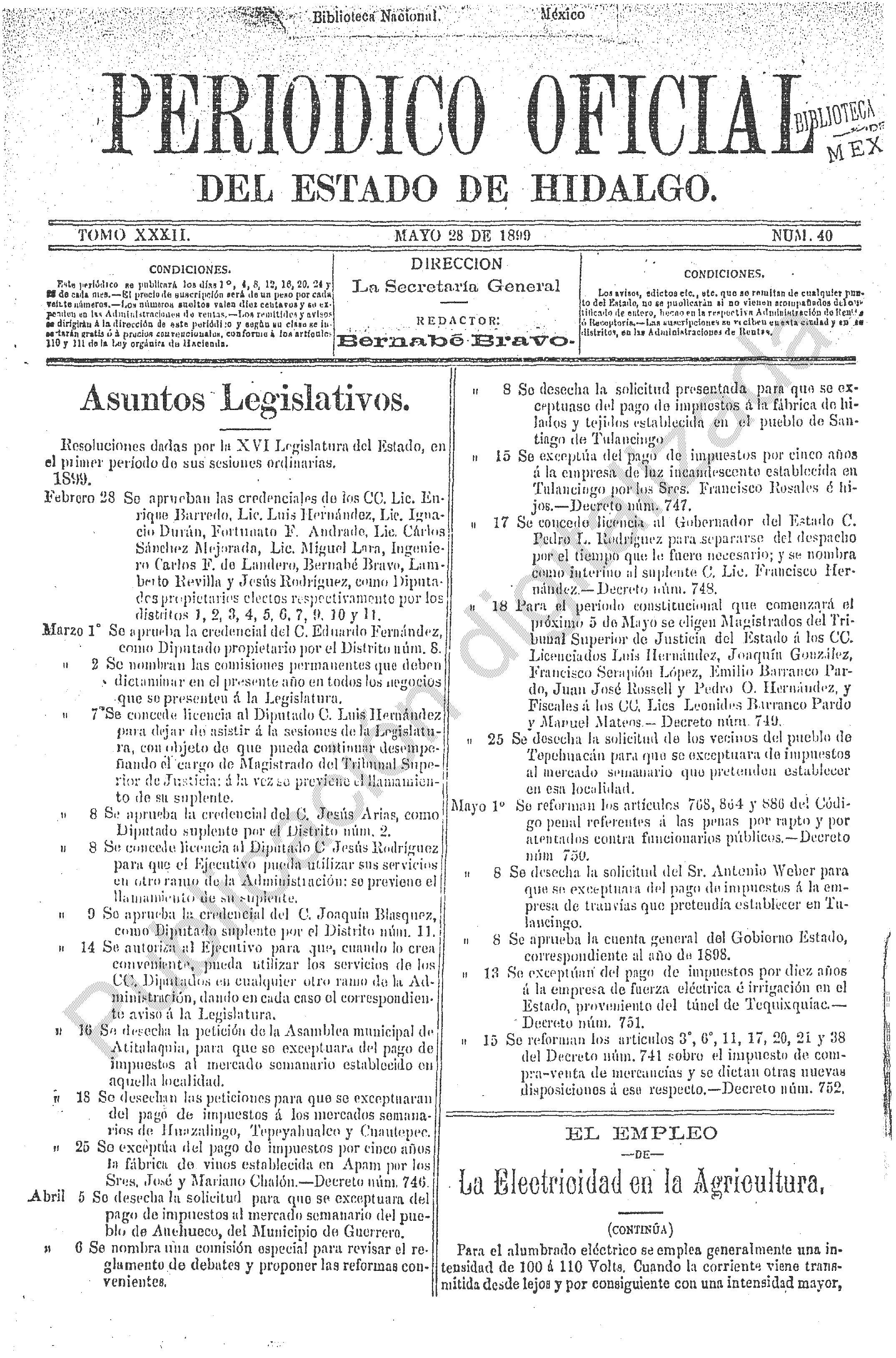 Periódico Oficial Ordinario 0 del 28 de mayo de 1899