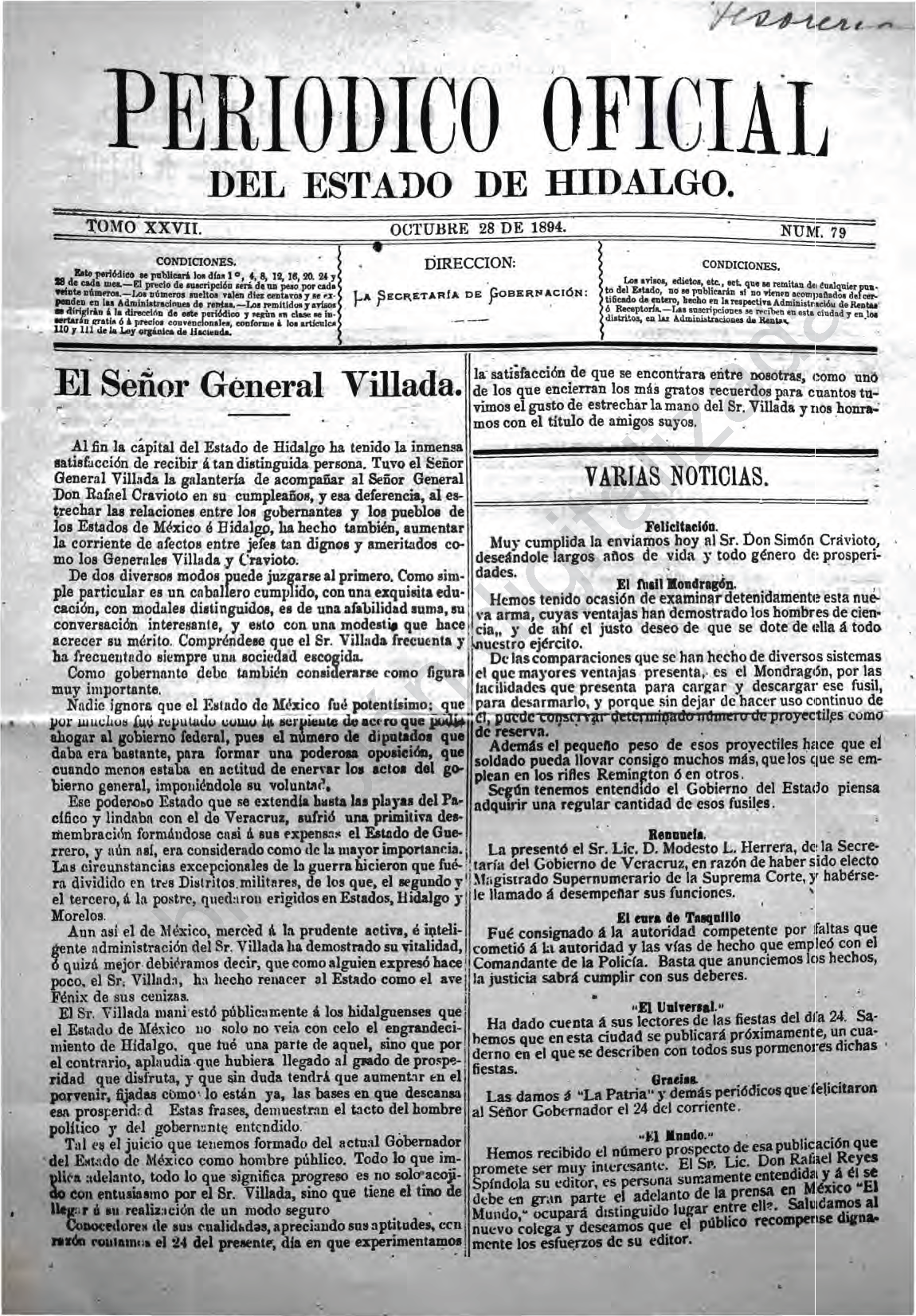 Descargar Periódico Oficial Ordinario 0 del 28 de octubre de 1894Tamaño 1.88 MB