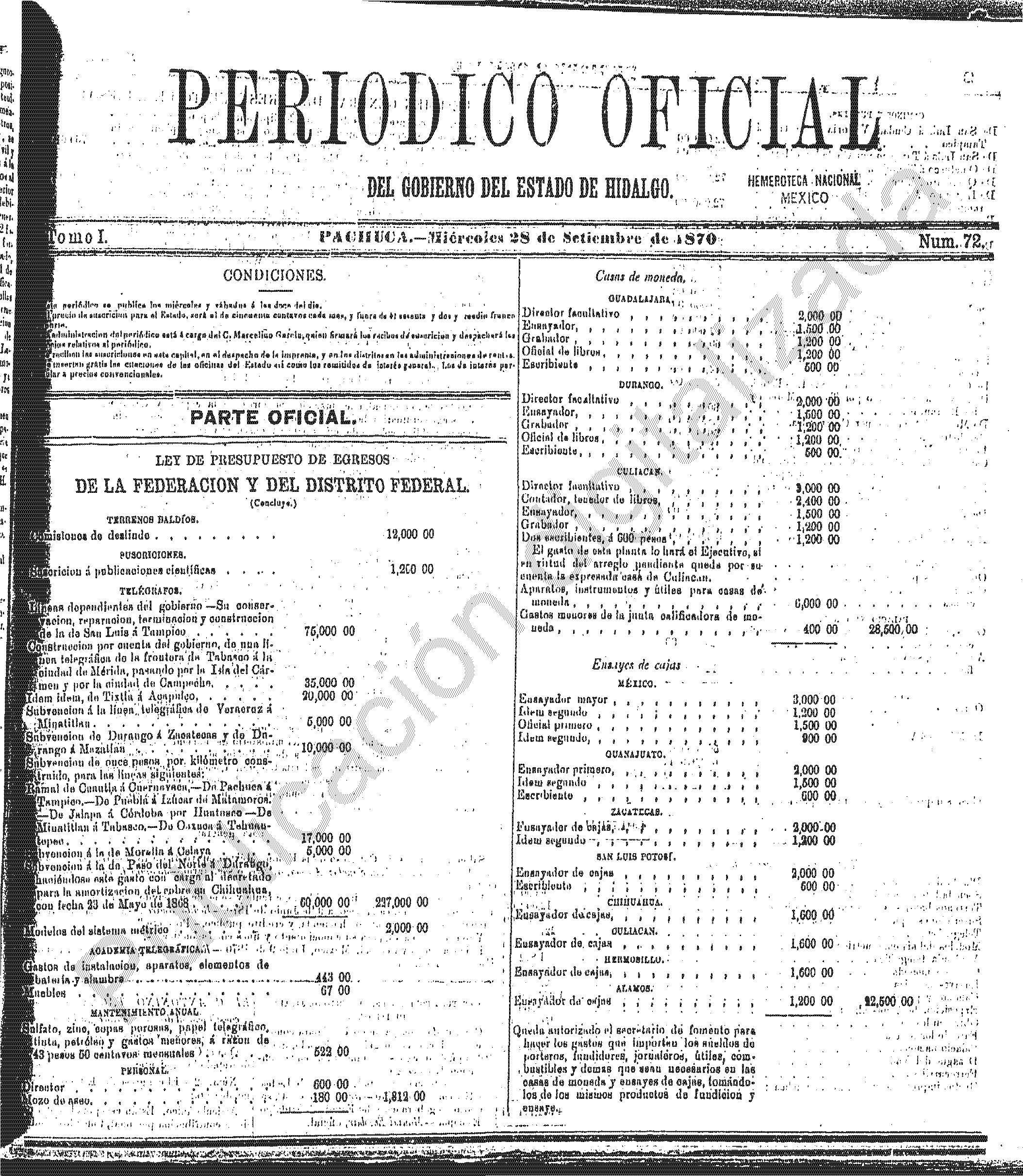 Descargar Periódico Oficial Ordinario 0 del 28 de septiembre de 1870El portal web del Periódico Oficial del Estado de hidalgo es el único medio de difusión oficial del Gobierno del Estado de Hidalgo