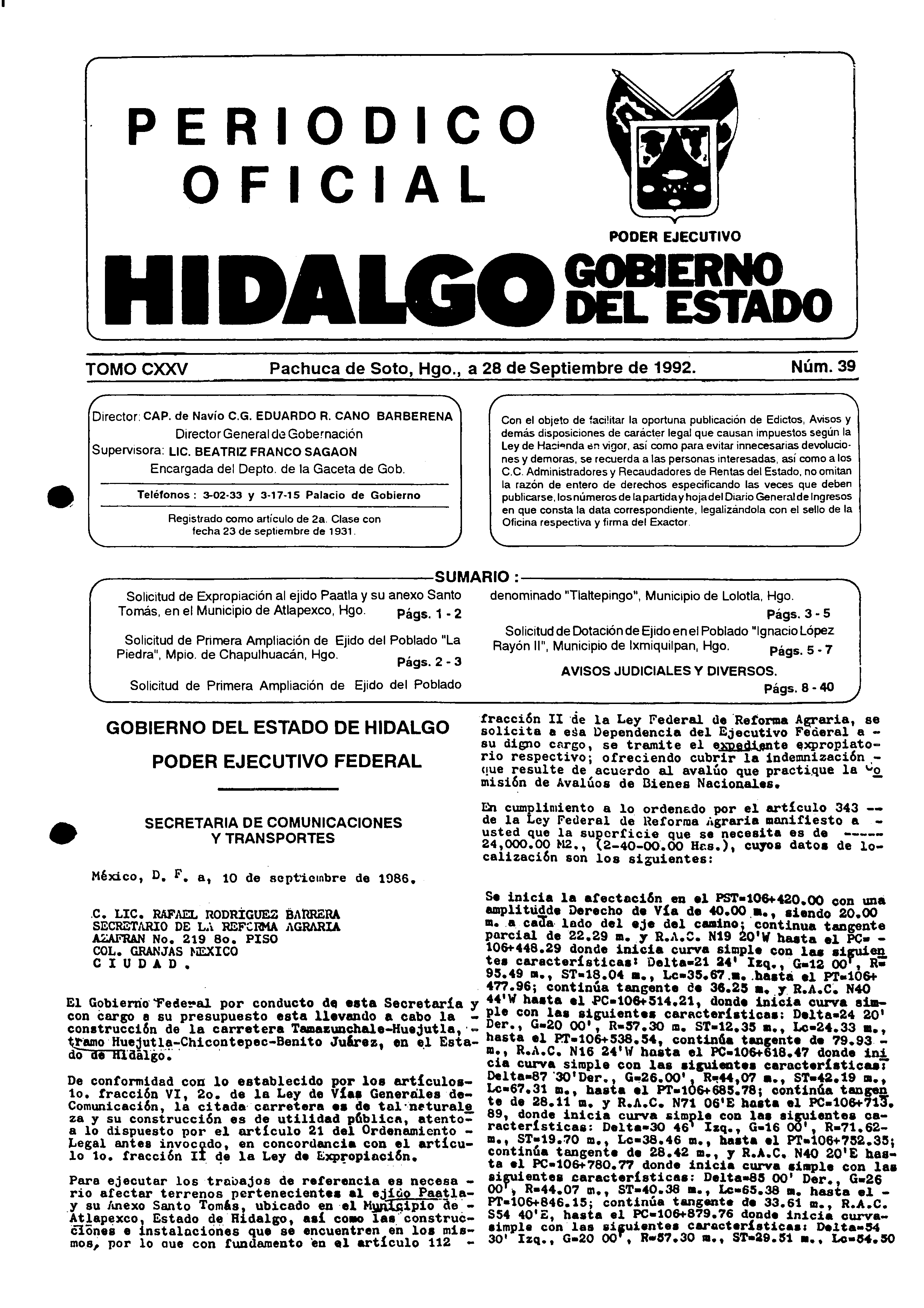 Periódico Oficial Ordinario 0 del 28 de septiembre de 1992