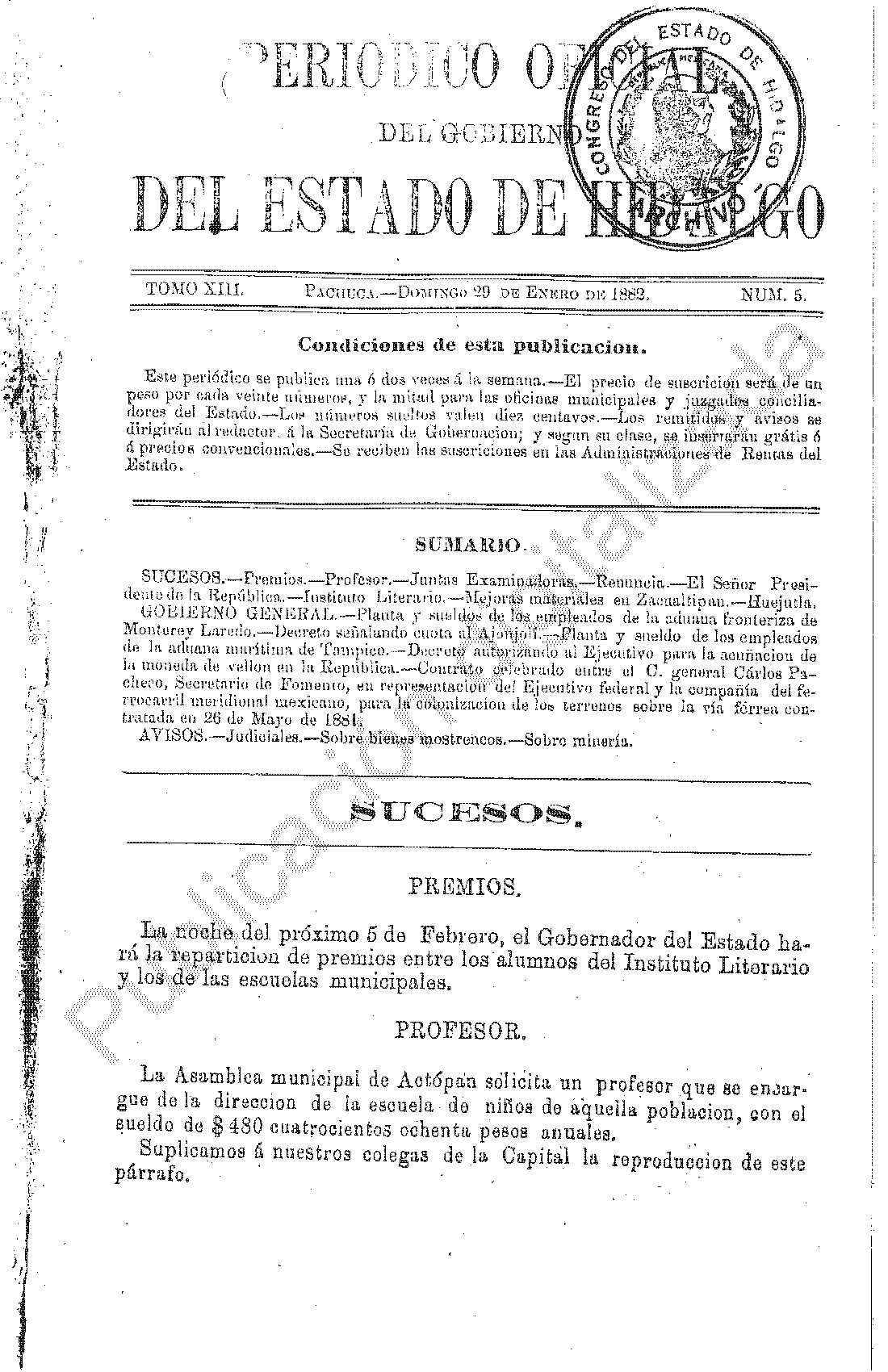 Periódico Oficial Ordinario 0 del 29 de enero de 1882