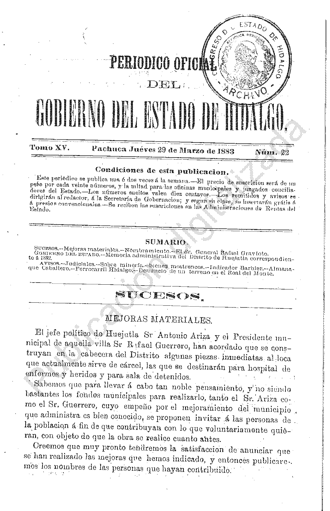 Descargar Periódico Oficial Ordinario 0 del 29 de marzo de 1883Tamaño 569.89 KB