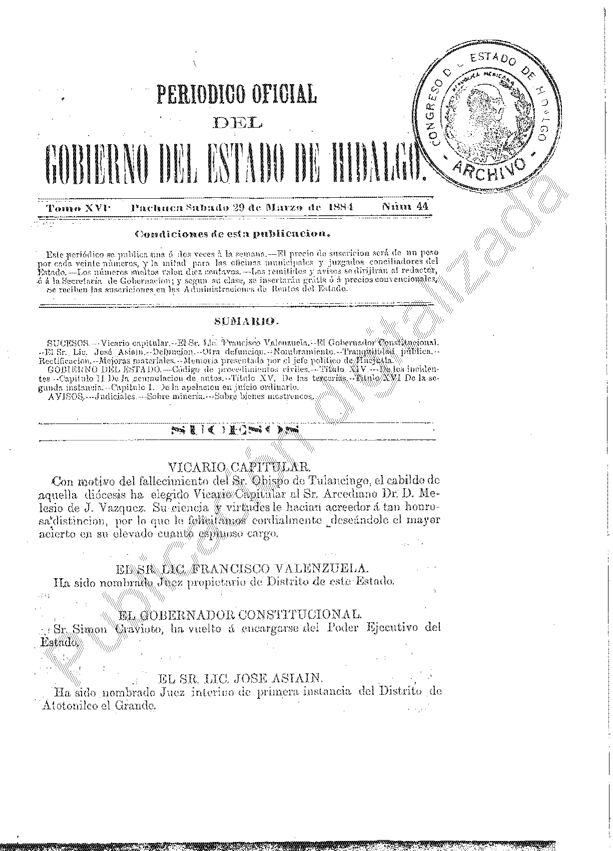 Descargar Periódico Oficial Ordinario 0 del 29 de marzo de 1884