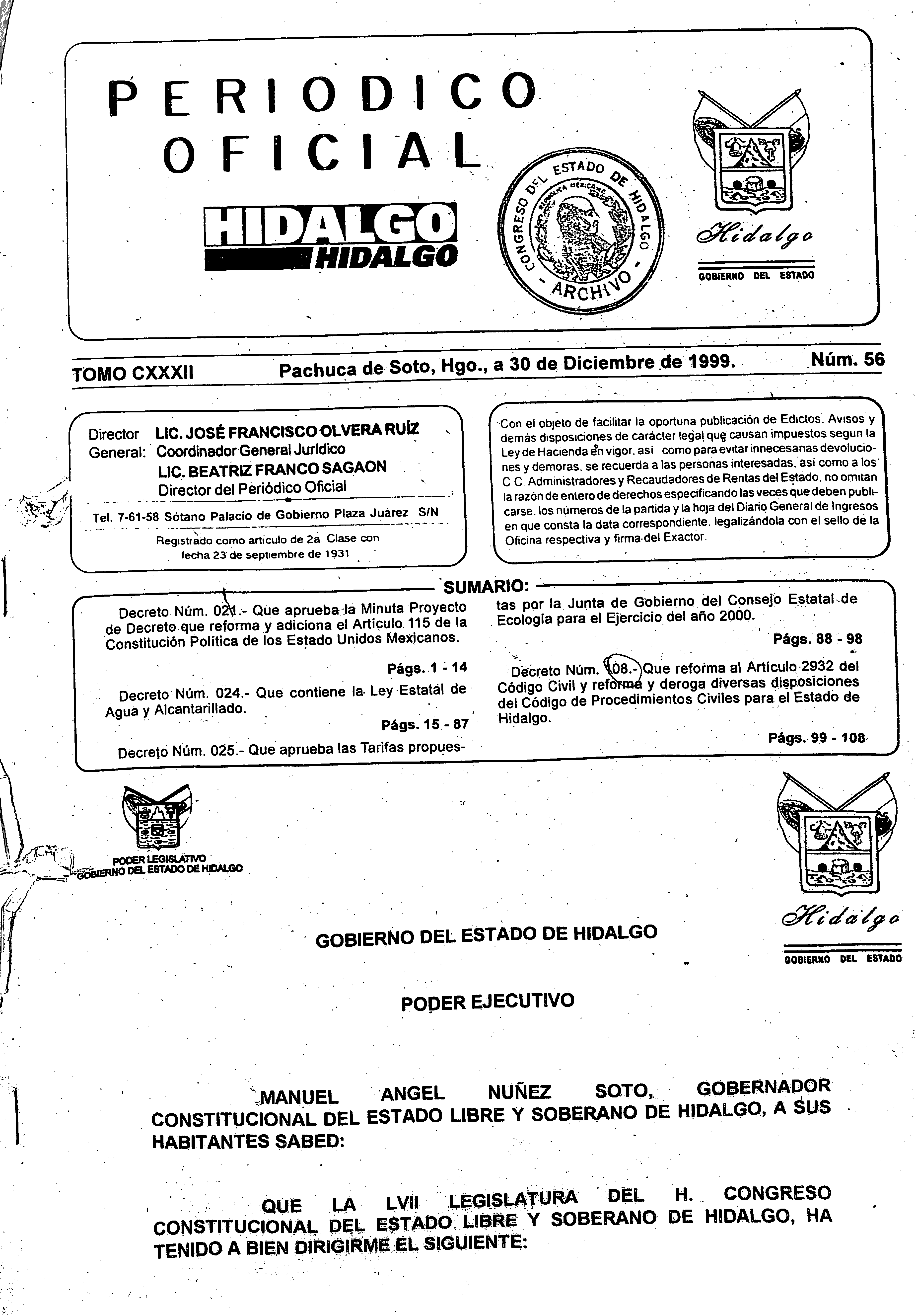 Descargar Periódico Oficial Ordinario 0 del 30 de diciembre de 1999
