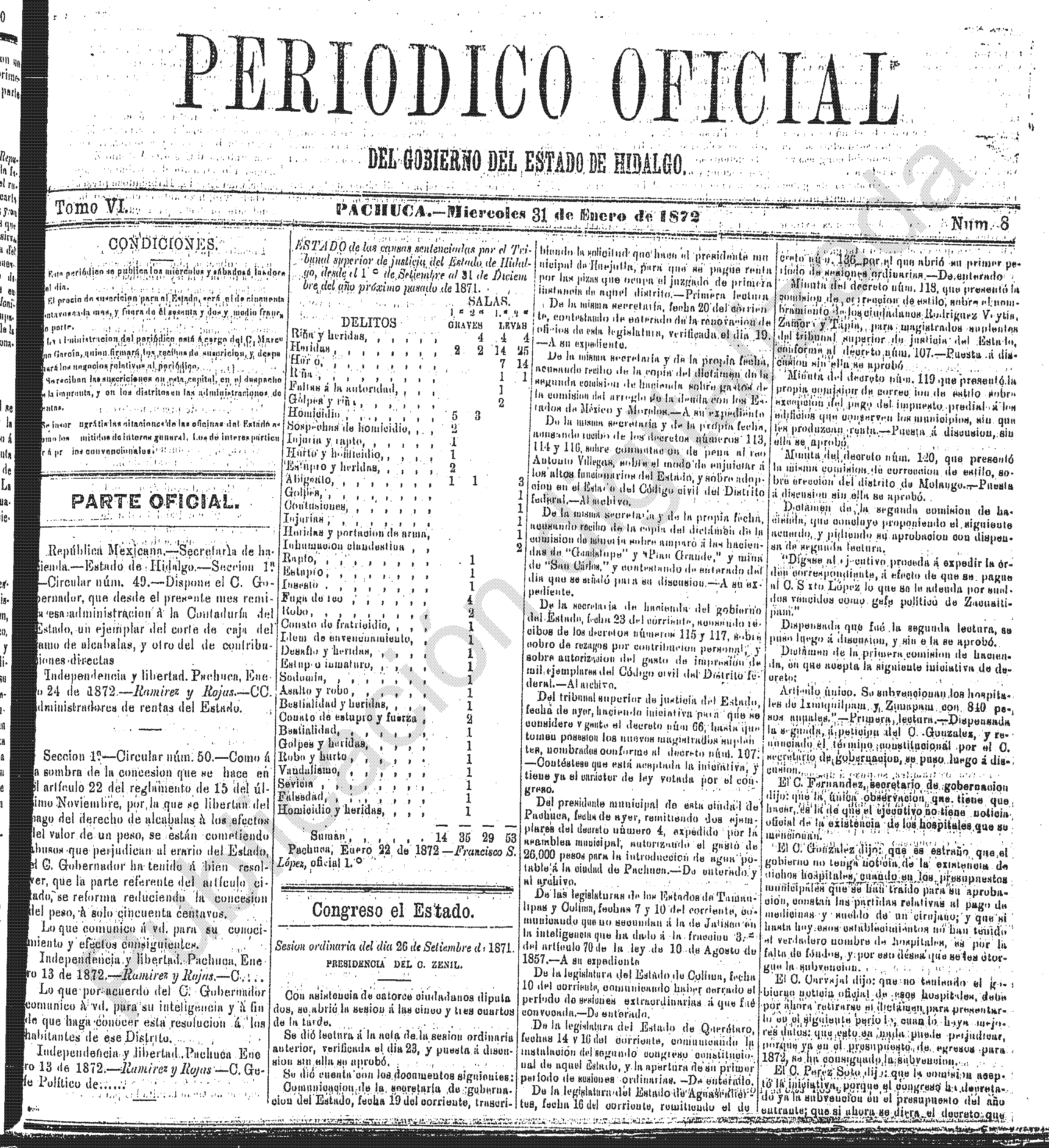 Descargar Periódico Oficial Ordinario 0 del 31 de enero de 1872El portal web del Periódico Oficial del Estado de hidalgo es el único medio de difusión oficial del Gobierno del Estado de Hidalgo