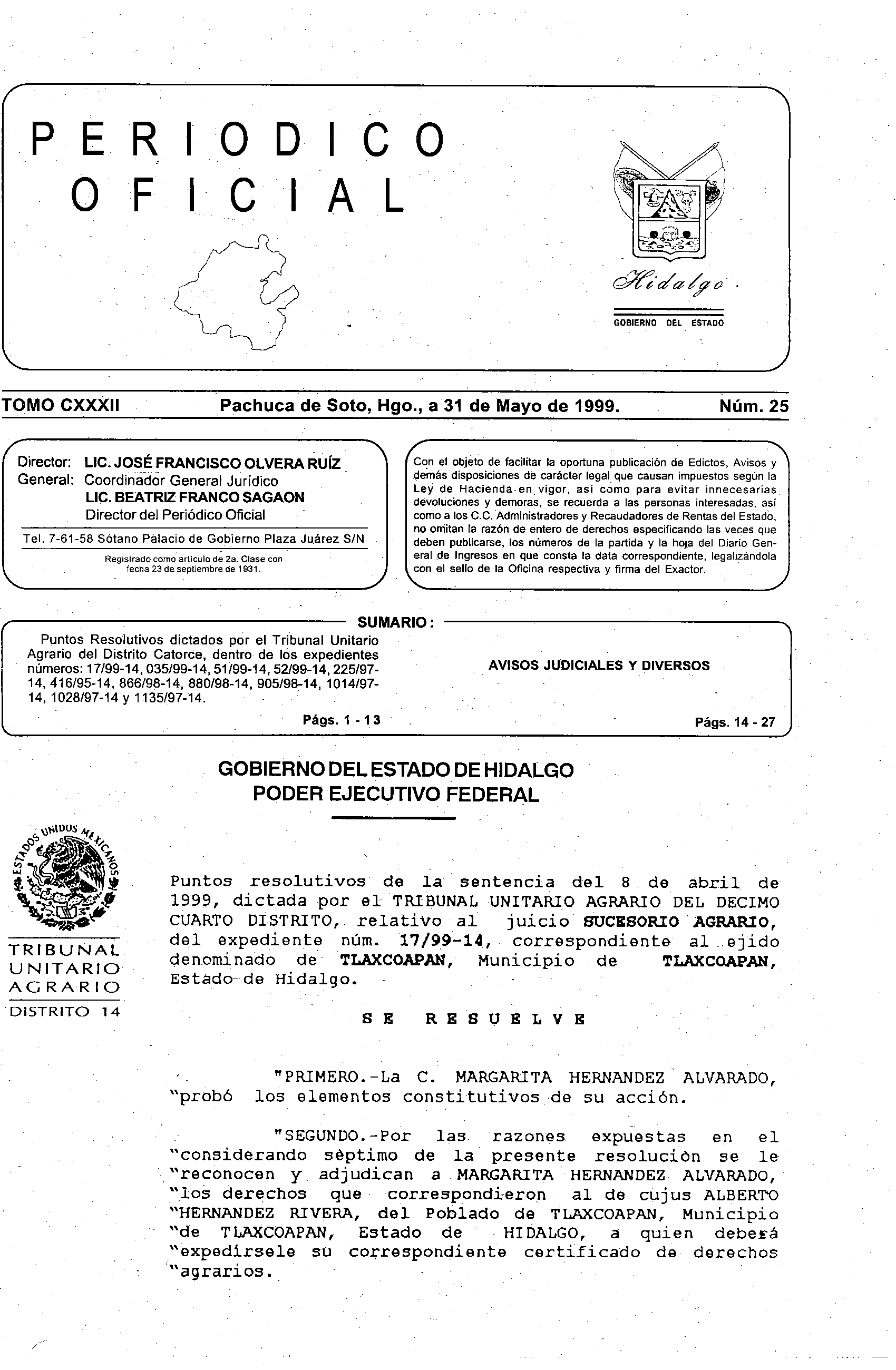 Edición: Ordinario 0 Número: 25 Páginas: 27 |
