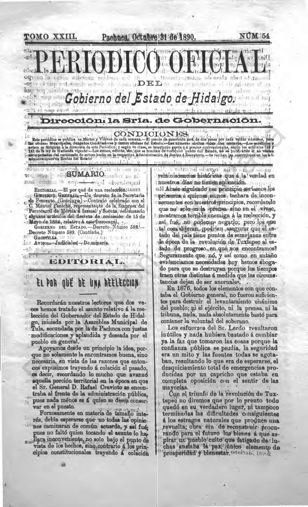 - Rafel Cravioto, Gobernador Constitucional del Estado de Hidalgo, Decreto 589, Leyde presupuesto de Egresos para 1891.