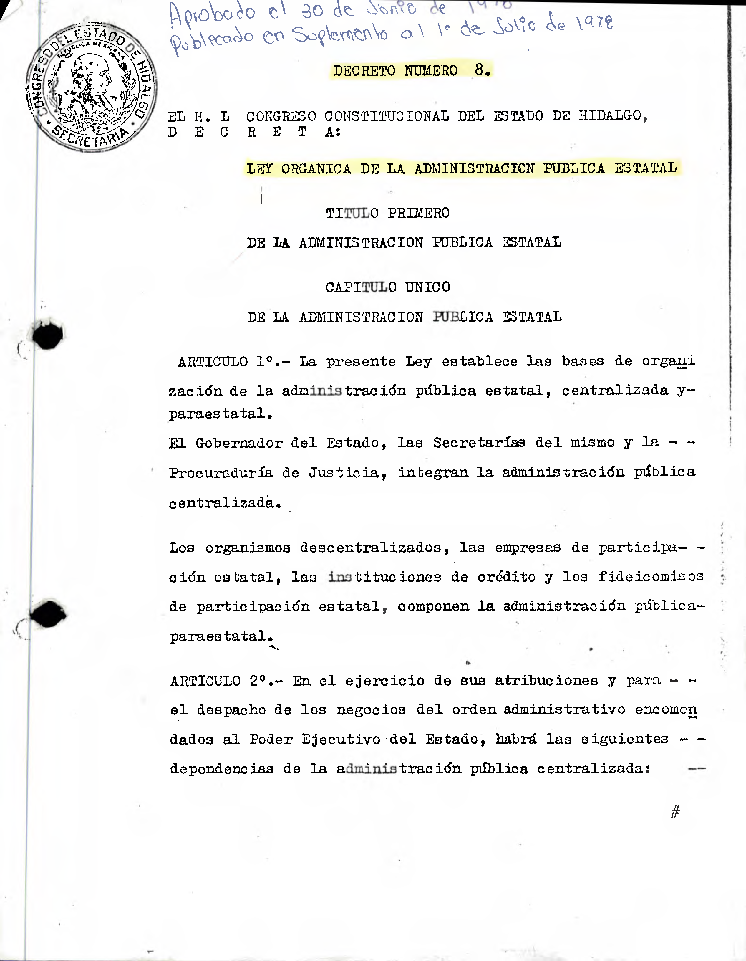 Descargar Periódico Oficial Suplemento 0 del 01 de julio de 1978