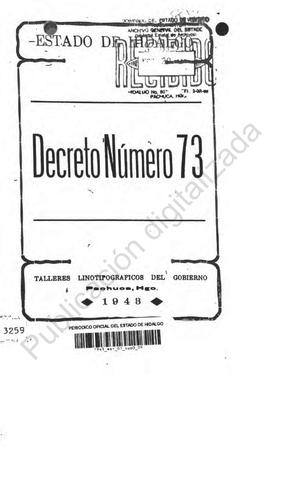 Descargar Periódico Oficial Suplemento 0 del 01 de marzo de 1943El portal web del Periódico Oficial del Estado de hidalgo es el único medio de difusión oficial del Gobierno del Estado de Hidalgo