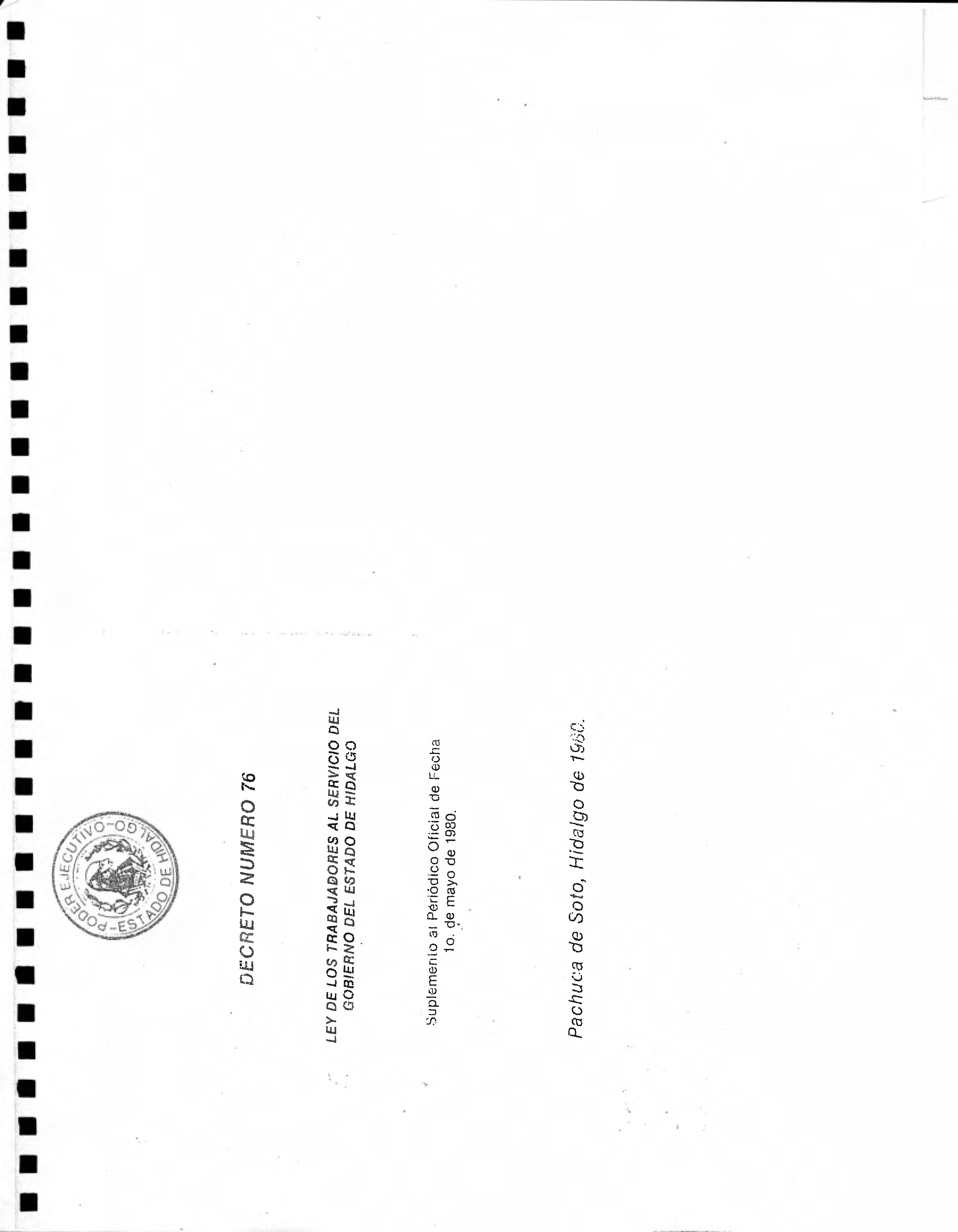 - Decreto 76, Ley de los trabajadores al servicio del Gobierno del Estado de Hidalgo.
