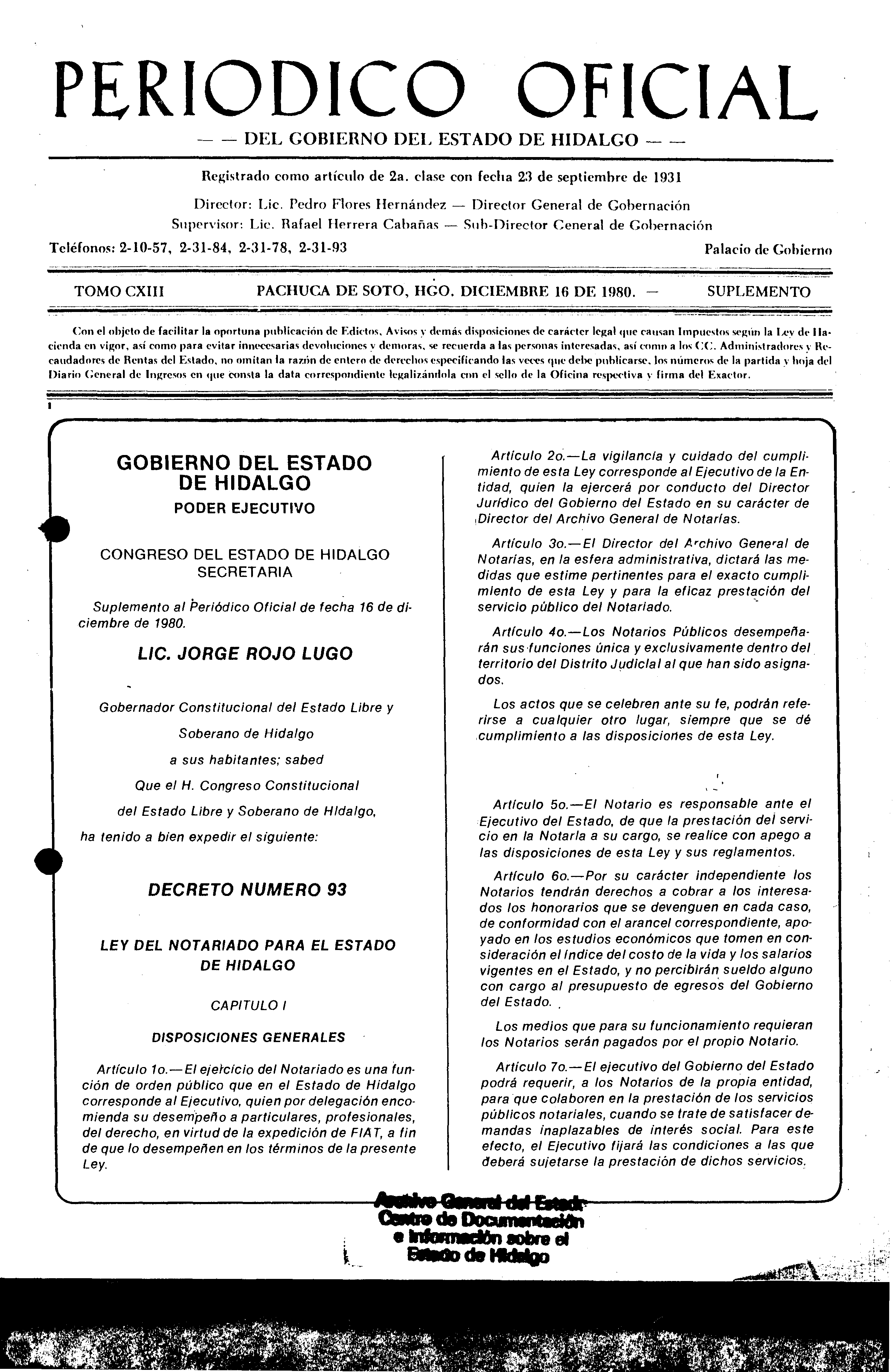 Periódico Oficial Suplemento 0 del 16 de diciembre de 1980