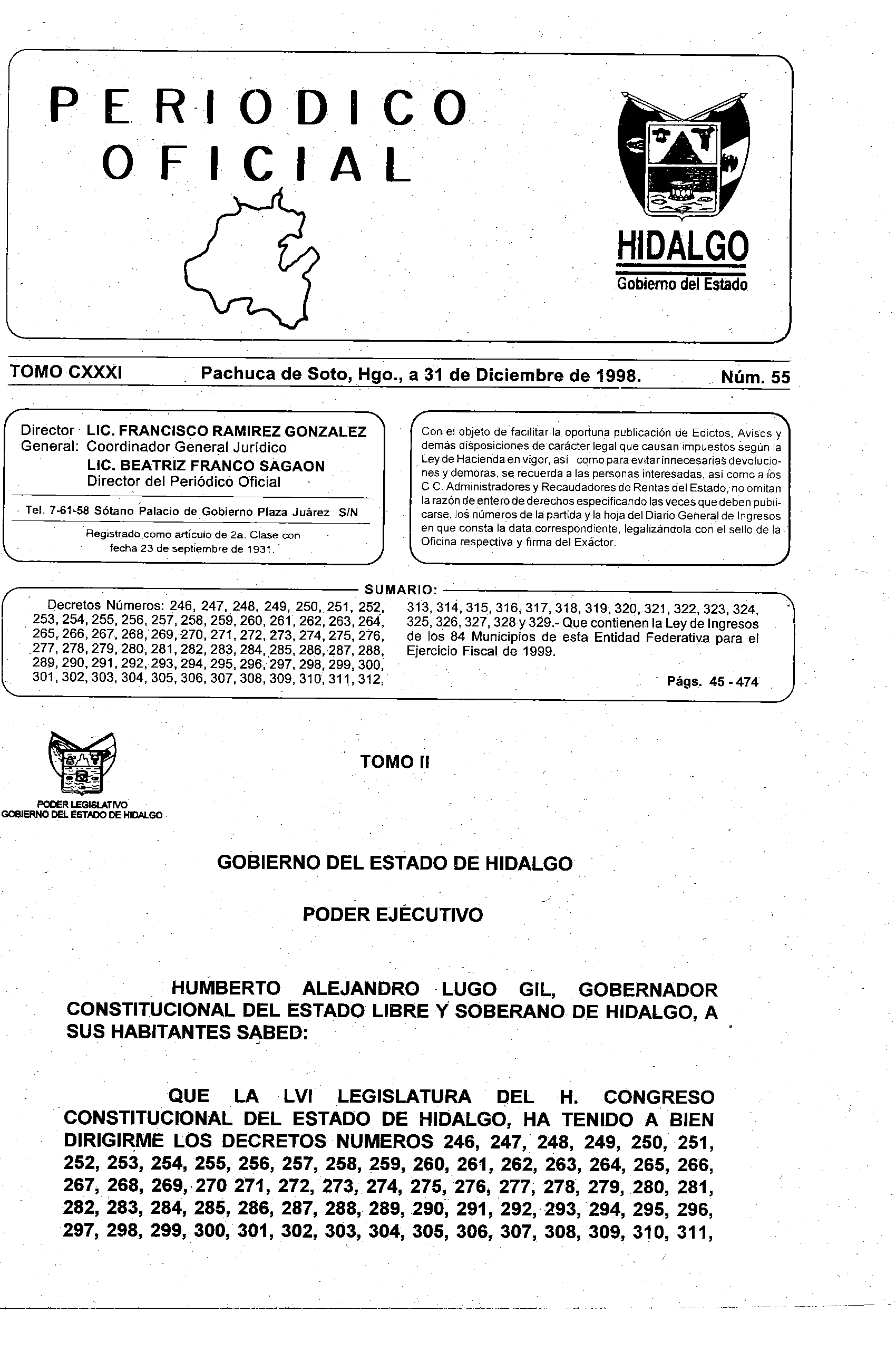Descargar Periódico Oficial Volumen 2 del 31 de diciembre de 1998