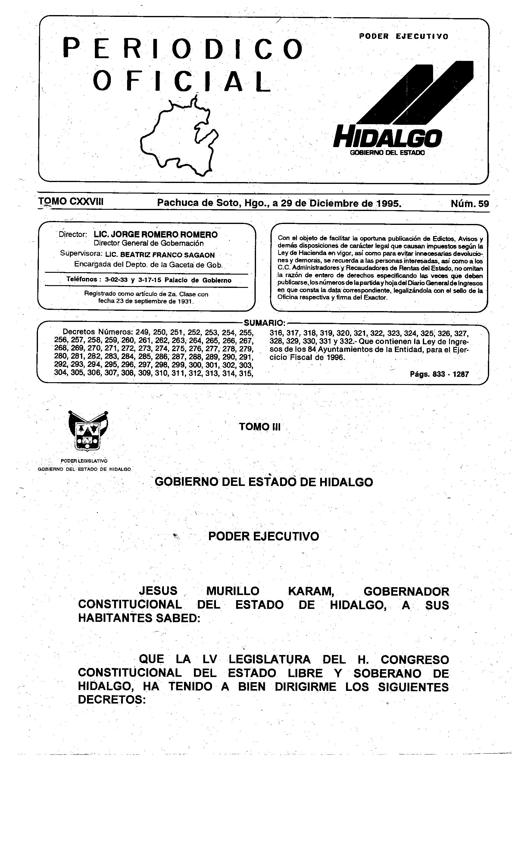Descargar Periódico Oficial Volumen 3 del 29 de diciembre de 1995